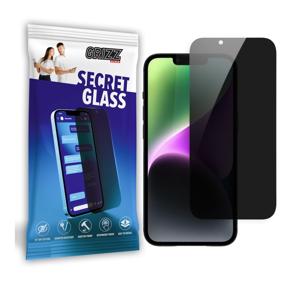 GrizzGlass SecretGlass Privacy Hybrid Screen Protector - хибридно защитно покритие с определен ъгъл на виждане за дисплея на iPhone 15 Plus (прозрачно)