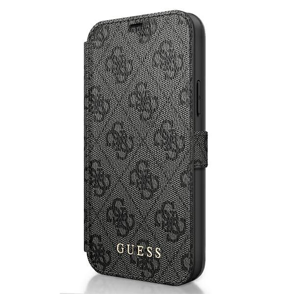 Guess Charms Collection Booktype Case - дизайнерски кожен калъф, тип портфейл за iPhone 12, iPhone 12 Pro (сив)