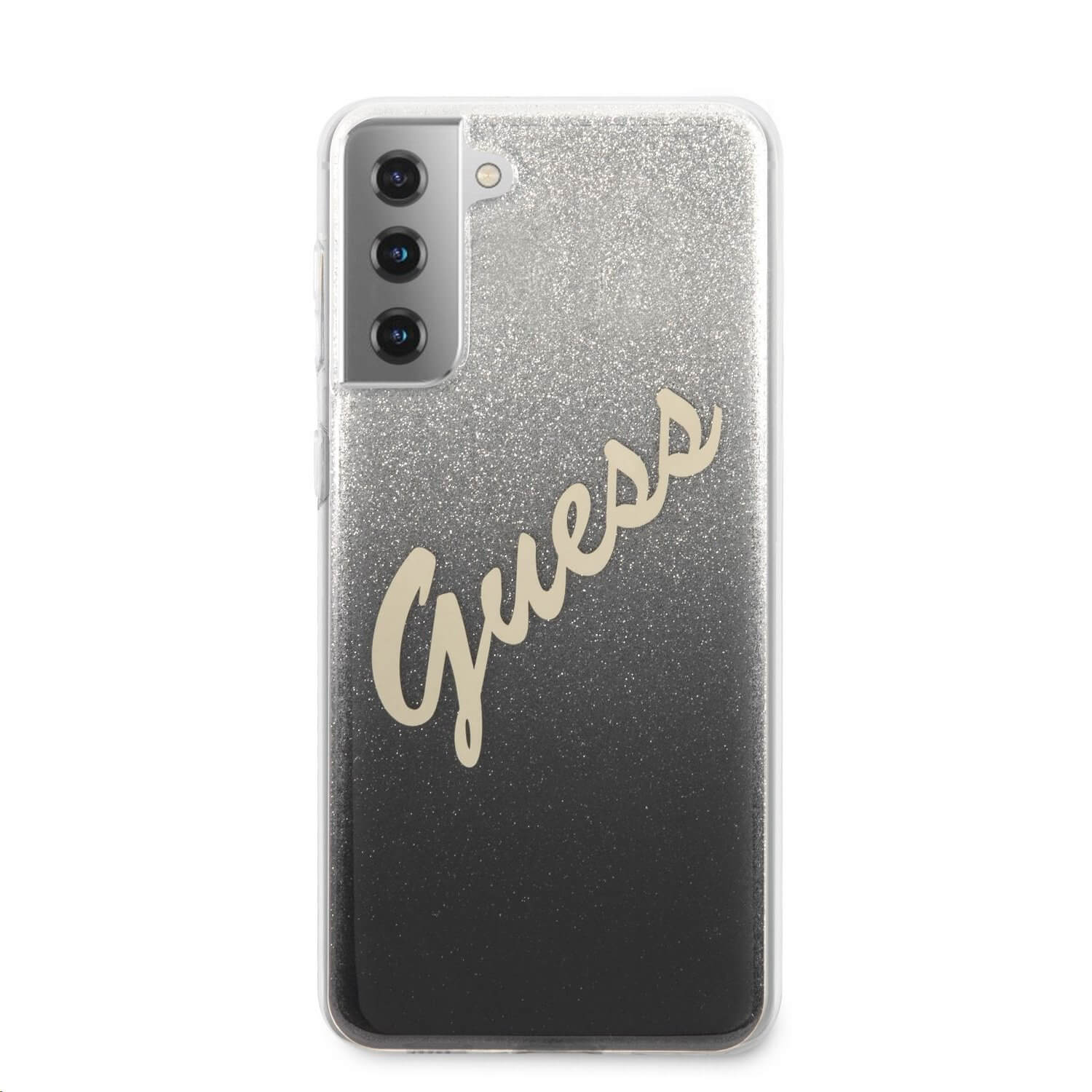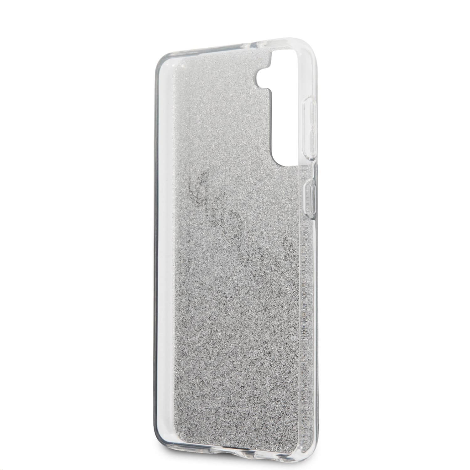 Guess Glitter Gradient Vintage Case - дизайнерски кейс с висока защита за Samsung Galaxy S21 Plus (сив)