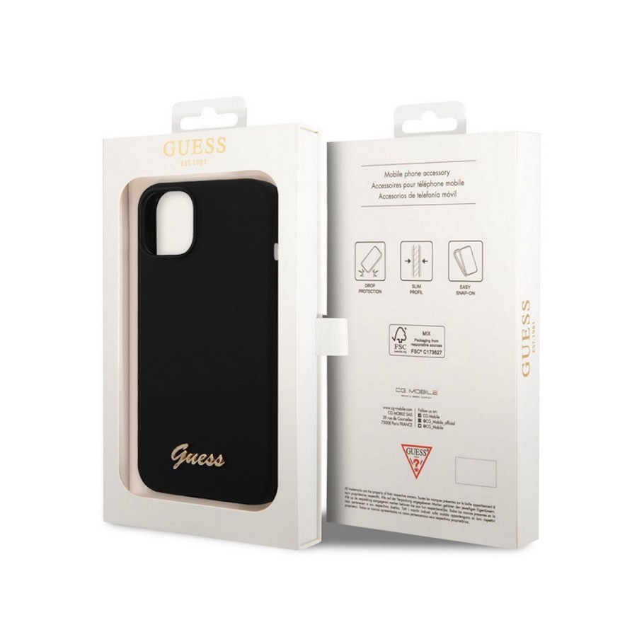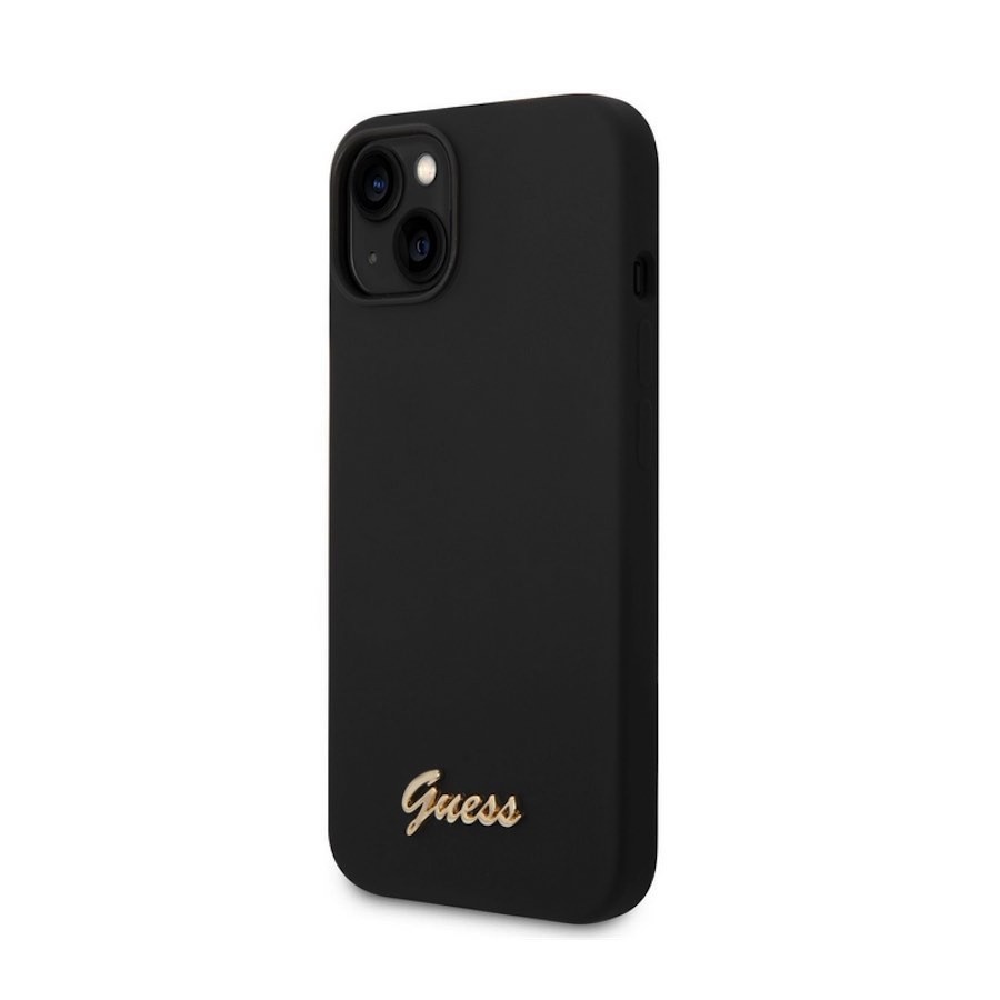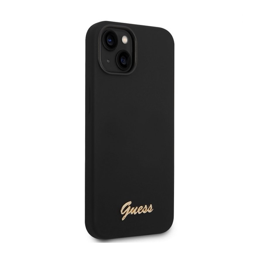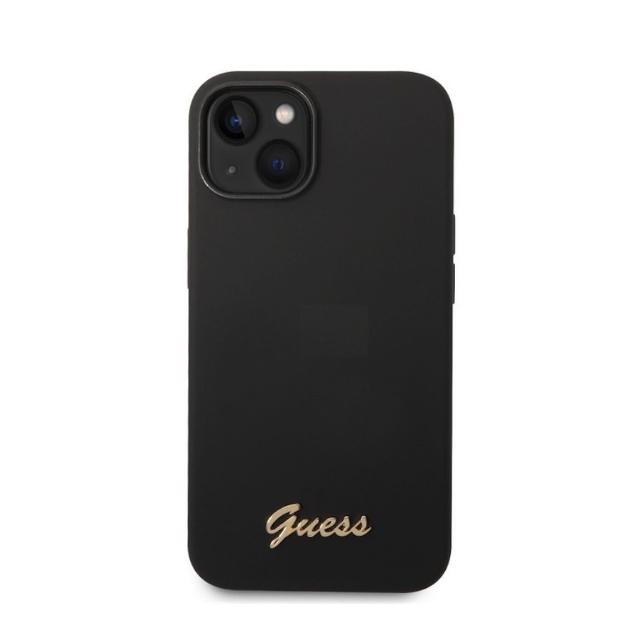 Guess Liquid Silicone Metal Logo Case - силиконов (TPU) калъф за iPhone 14 (черен)