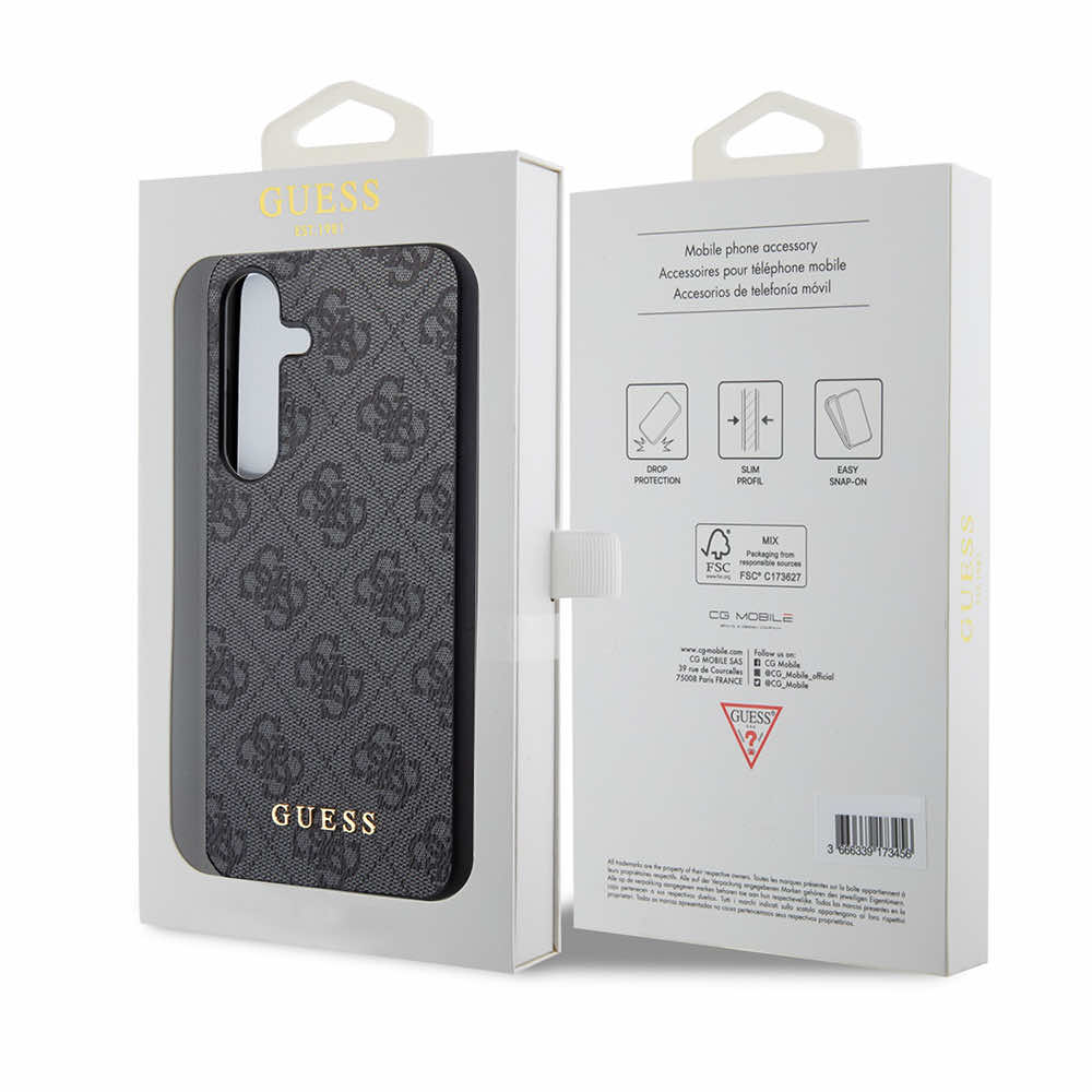 Guess PU 4G Charms Collection Leather Hard Case - дизайнерски кожен кейс за Samsung Galaxy S24 Plus (сив)