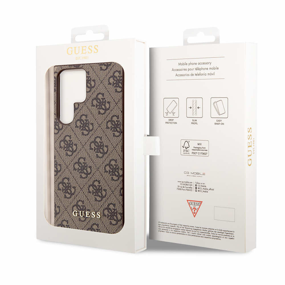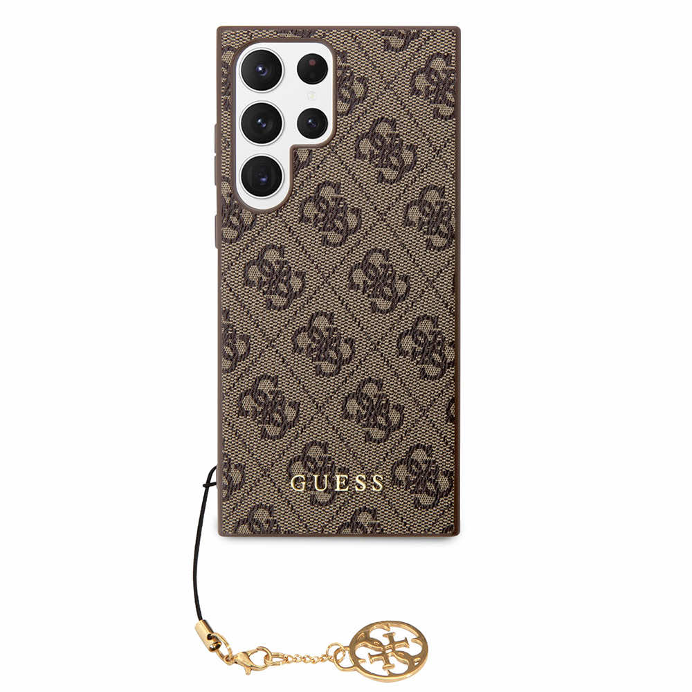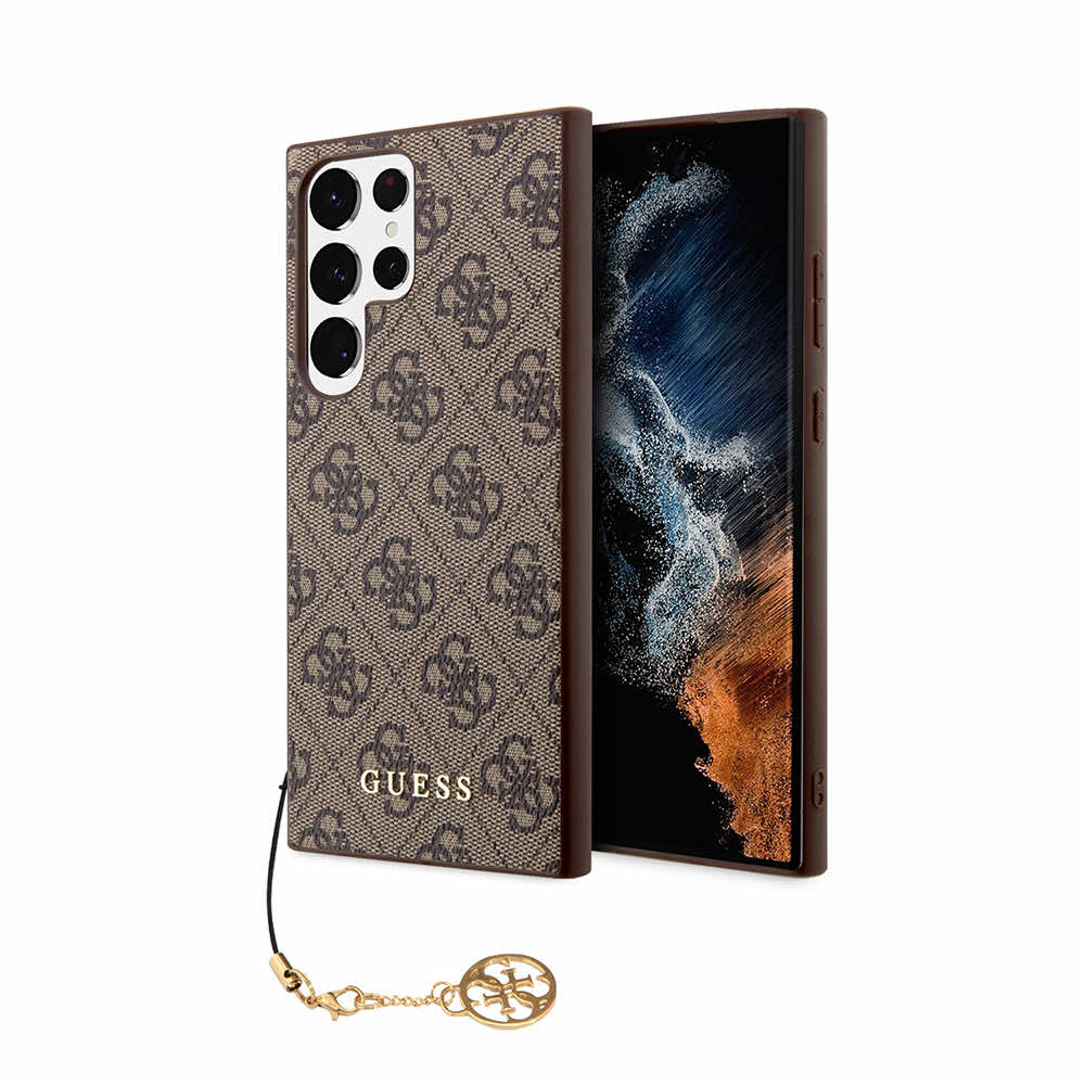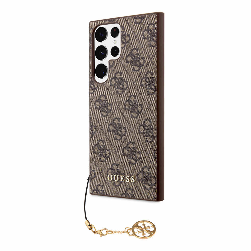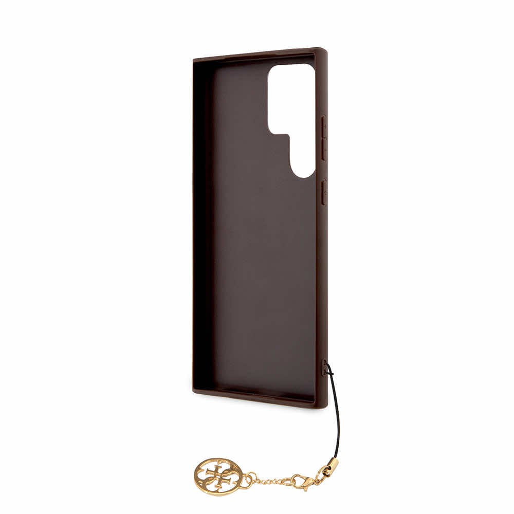Guess PU 4G Charms Collection Leather Hard Case - дизайнерски кожен кейс за Samsung Galaxy S24 Ultra (кафяв)