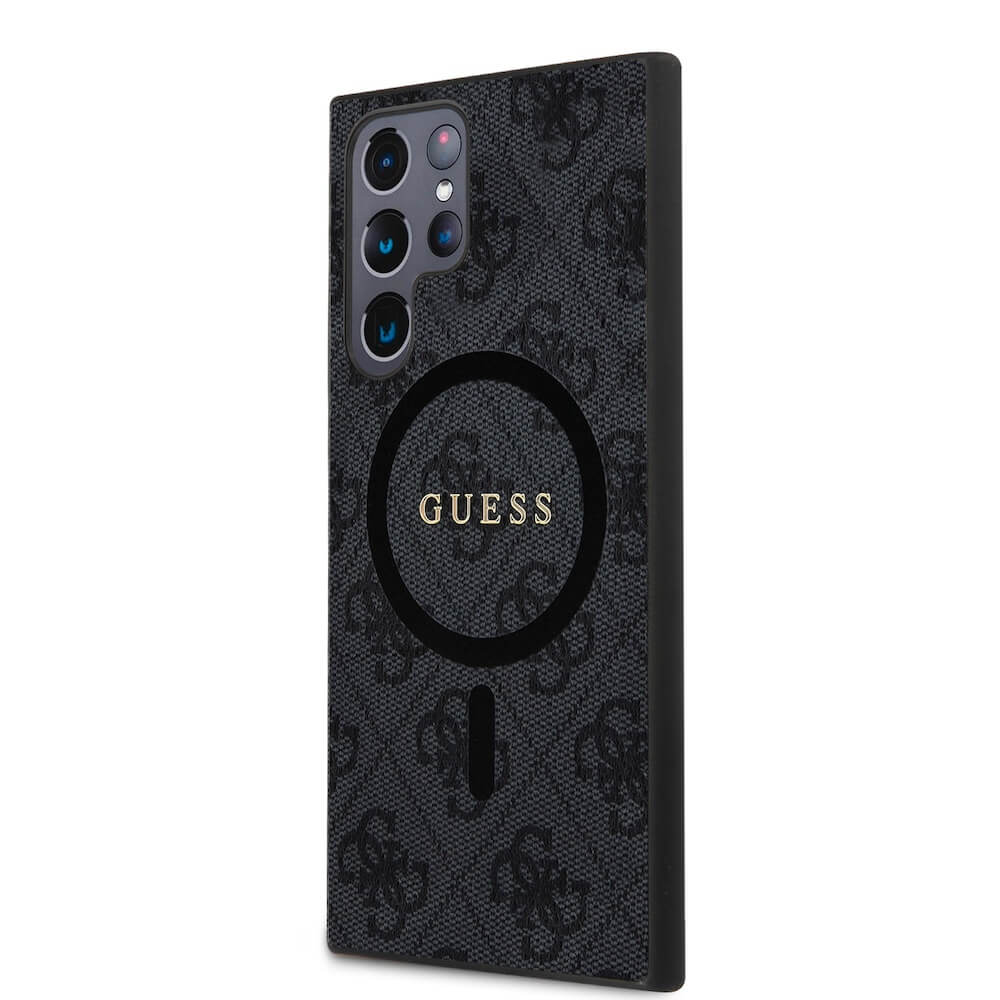 Guess PU 4G Colored Ring MagSafe Leather Hard Case - дизайнерски кожен кейс с MagSafe за Samsung Galaxy S24 Ultra (черен)