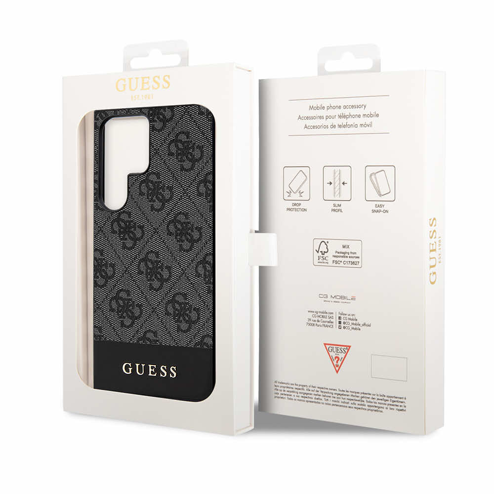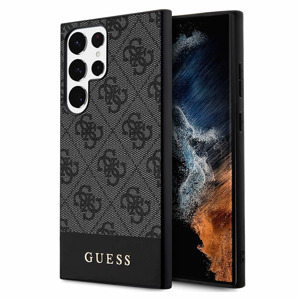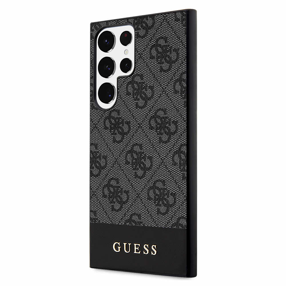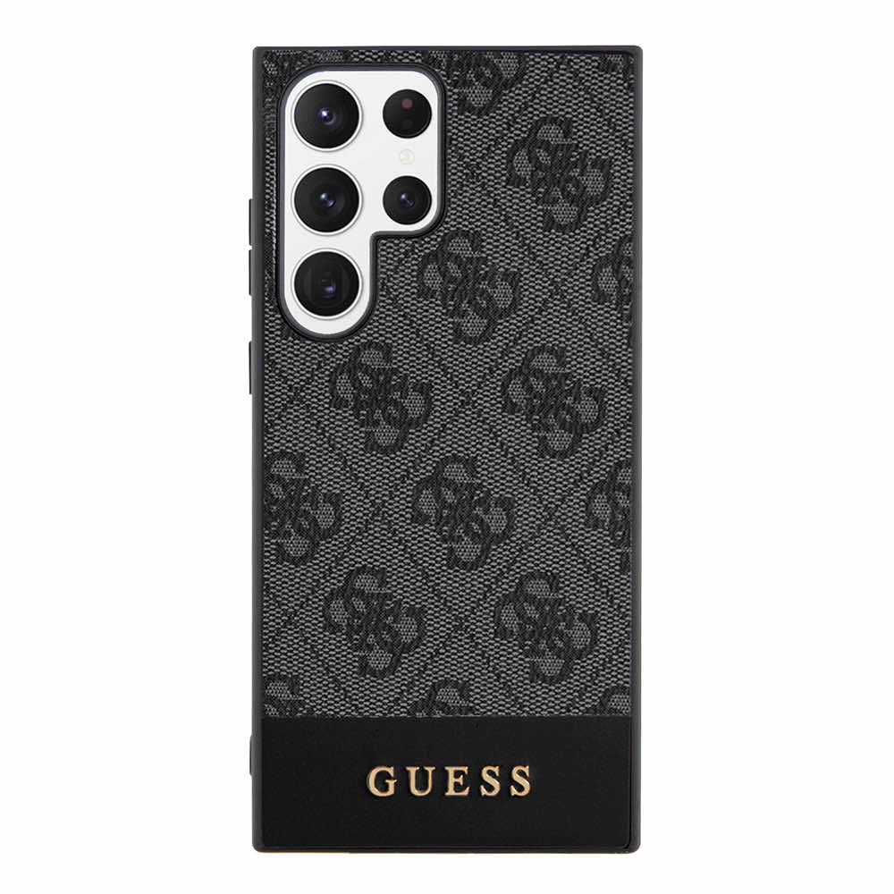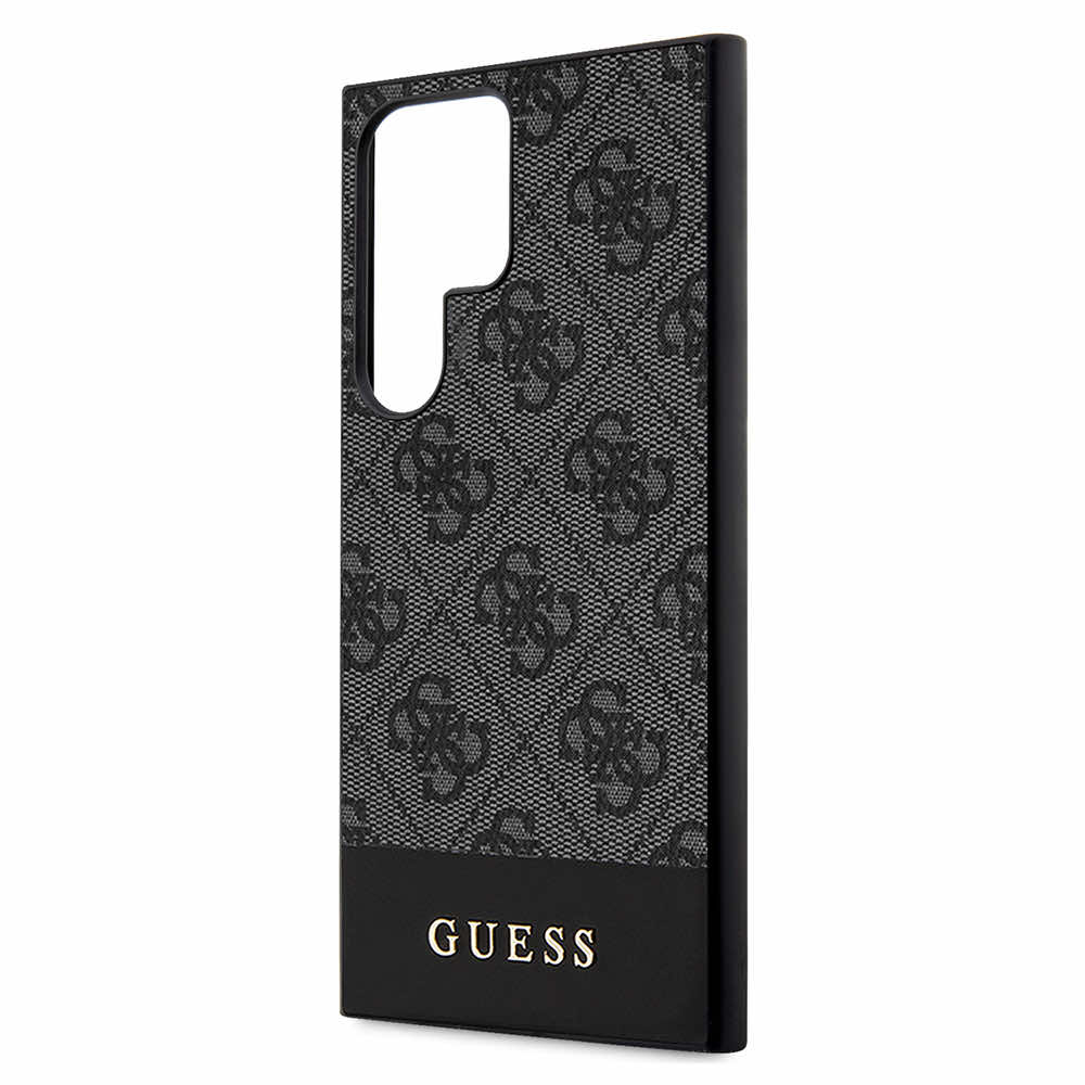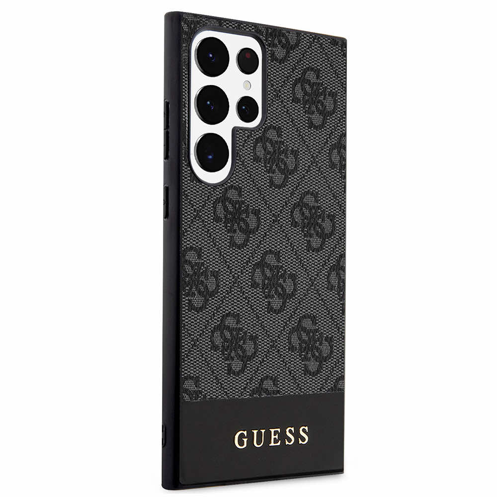 Guess PU 4G Stripe Leather Hard Case - дизайнерски кожен кейс за Samsung Galaxy S24 Ultra (сив)