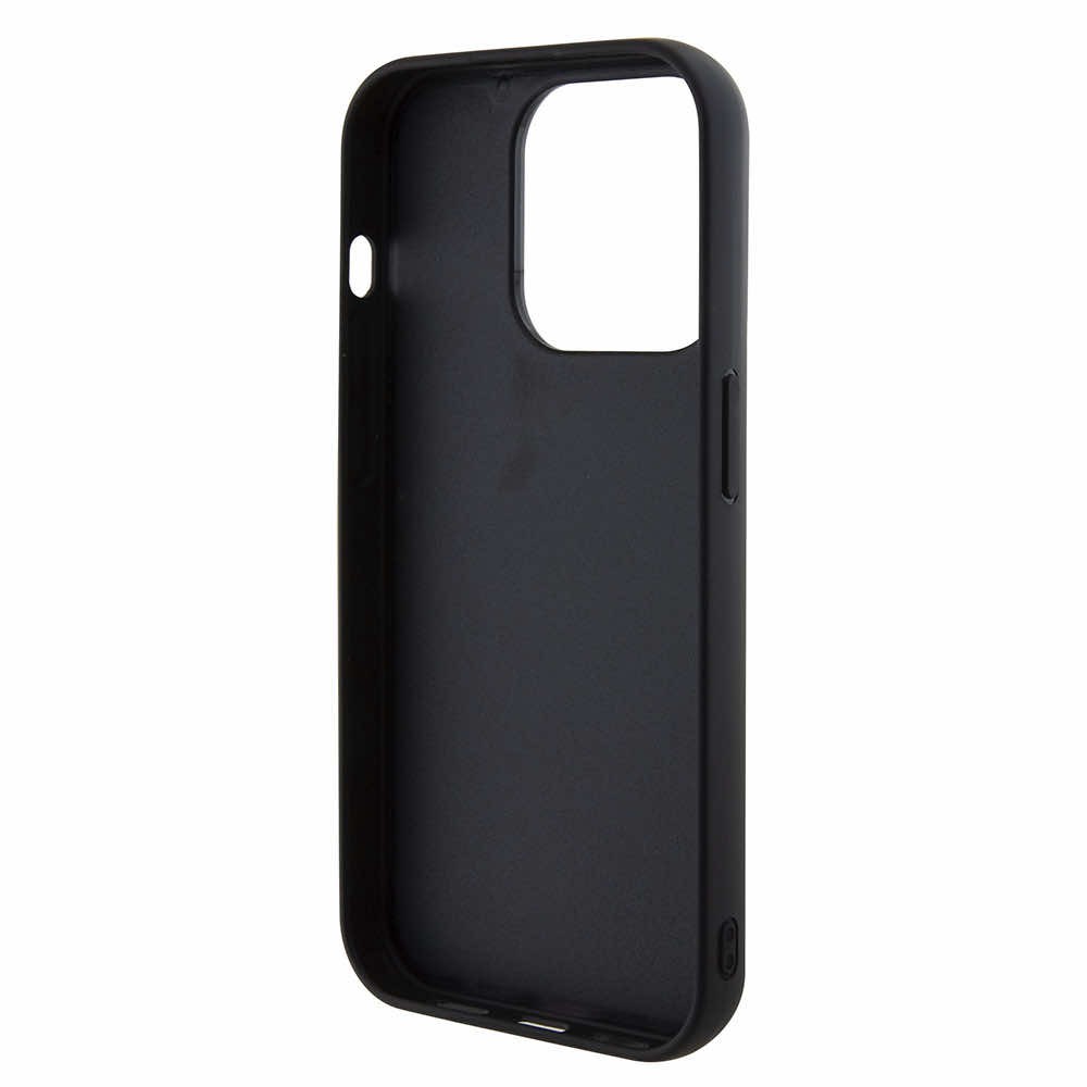 Guess PU Square Mirror Script Logo Leather Hard Case - дизайнерски кожен кейс за iPhone 15 Pro (черен)
