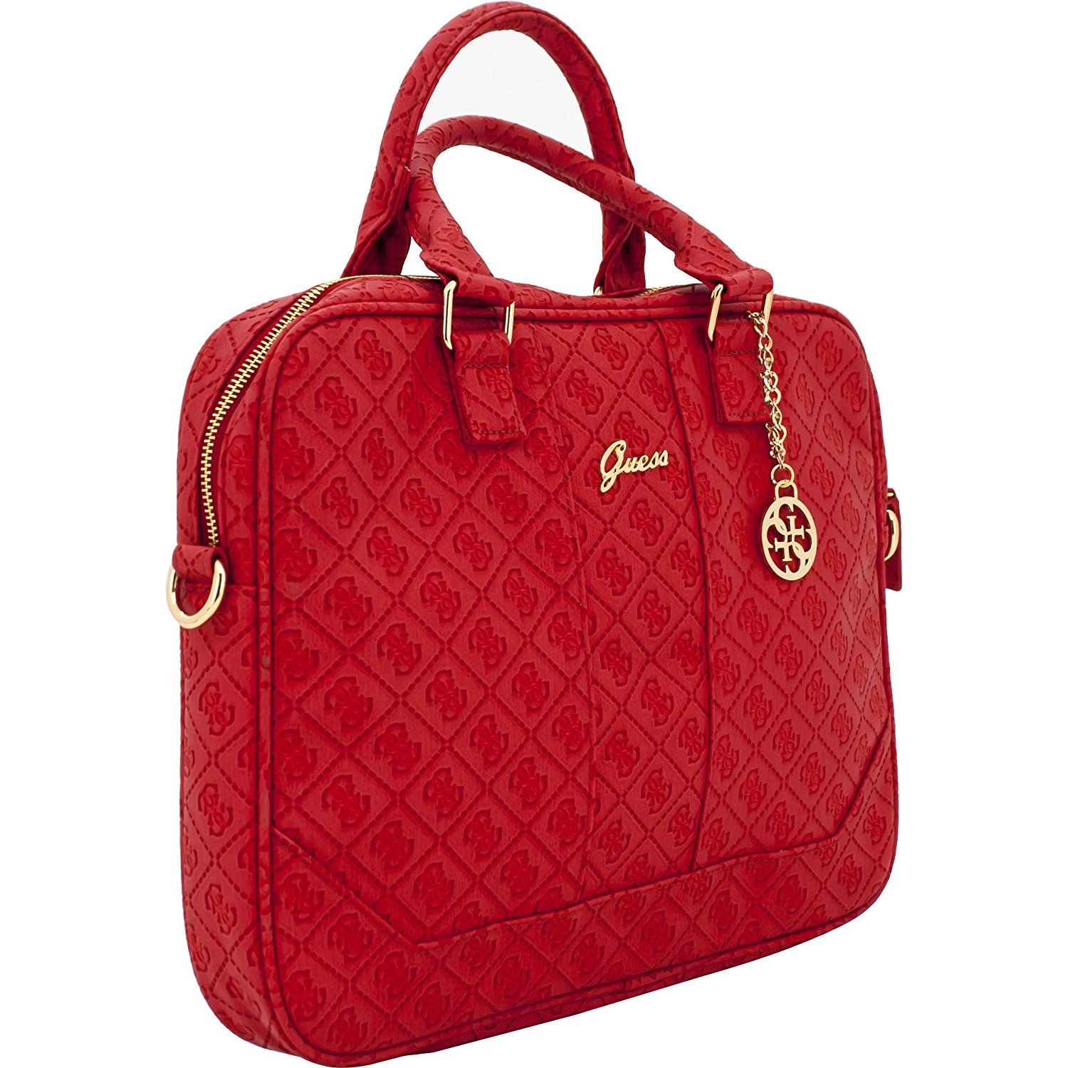 Guess Scarlett Bag - луксозна дизайнерска чанта с дръжки и презрамка за преносими компютри до 13.3 инча (червена)