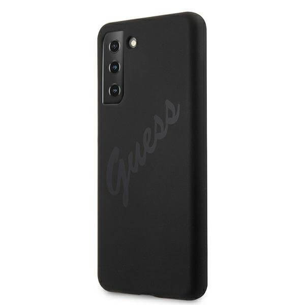 Guess Silicone Script Vintage Silicone Case - дизайнерски силиконов кейс за Samsung Galaxy S21 Plus (черен)
