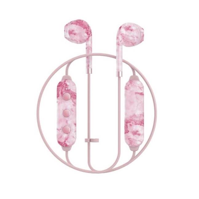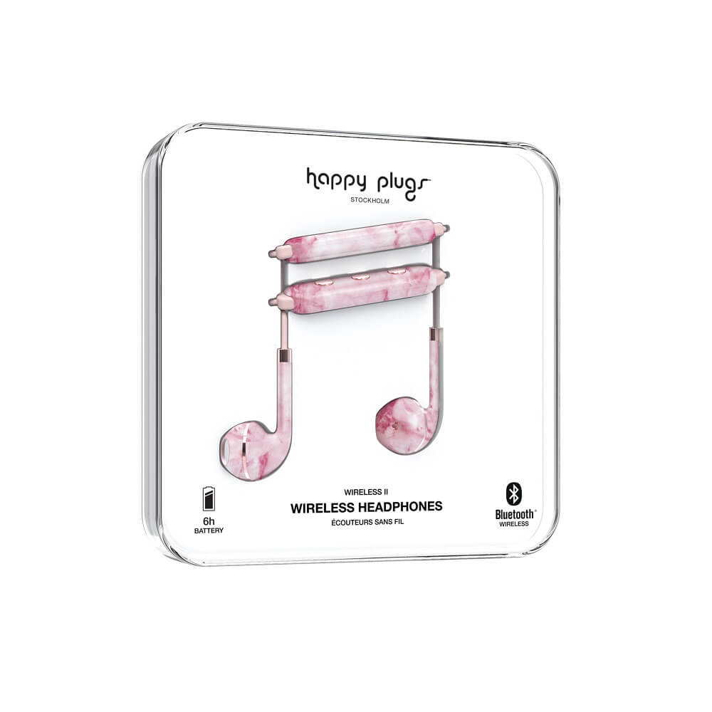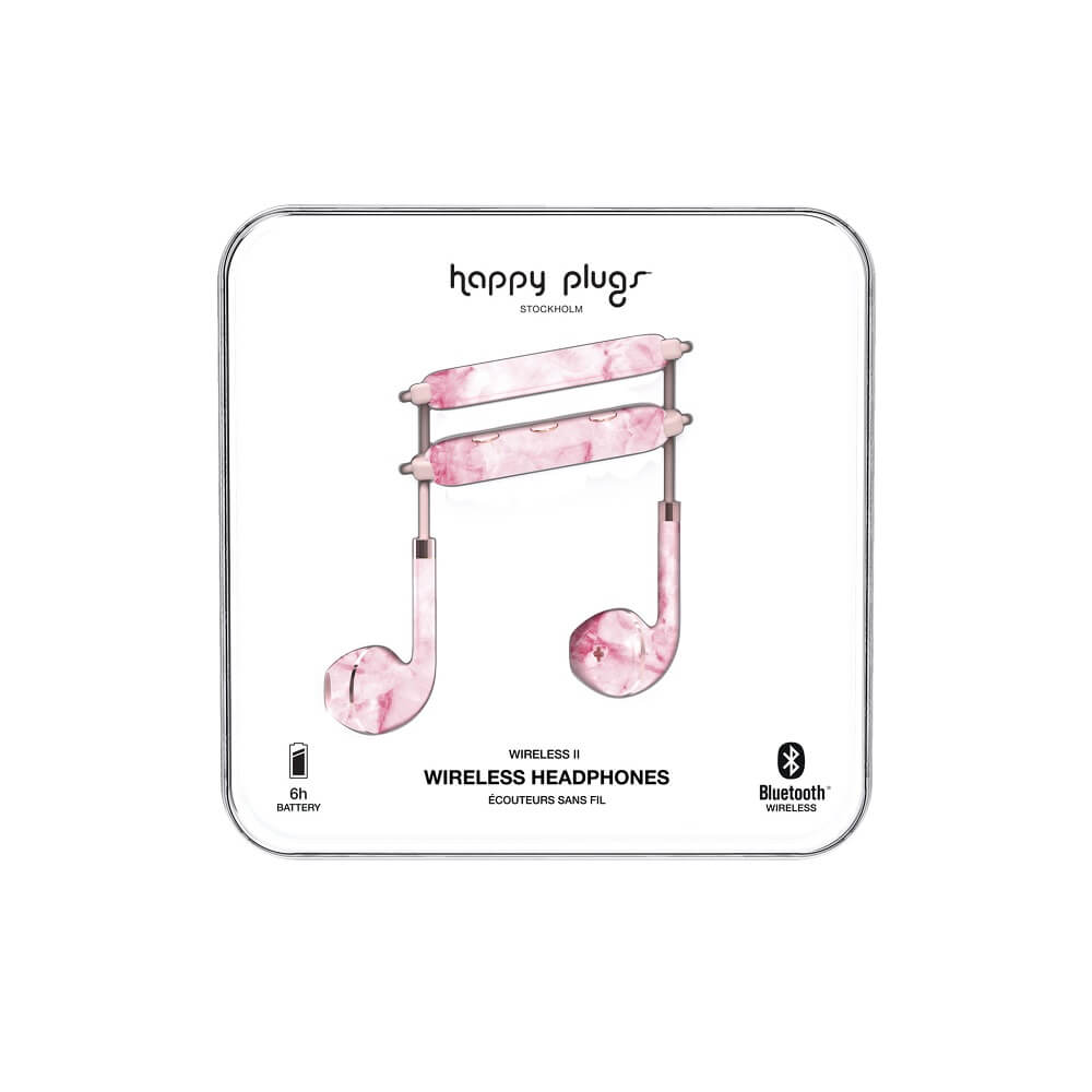 Happy Plugs Wireless II Earbuds - безжични Bluetooth слушалки с микрофон за мобилни устройства (розов мрамор)