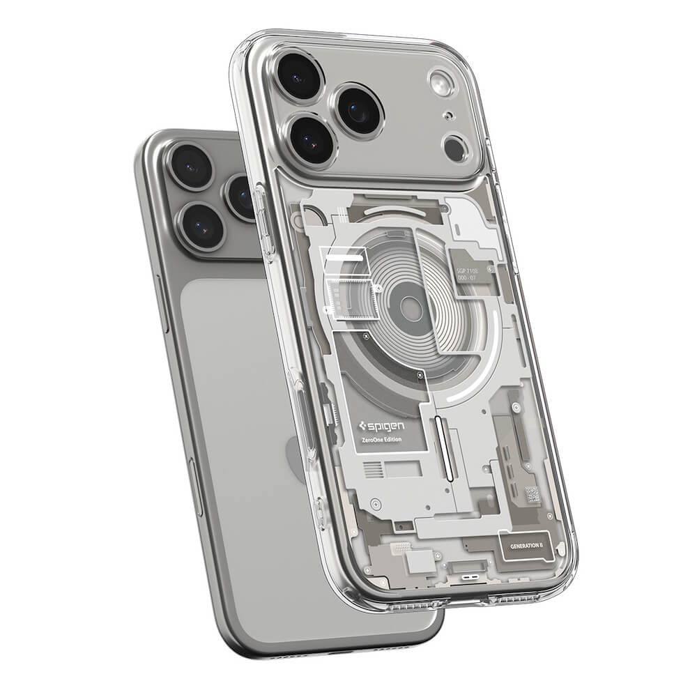 Хибриден кейс с висока степен на защита с MagSafe за iPhone 17 Pro - Spigen Ultra Hybrid MagSafe Zero One Case (прозрачен-сребрист)