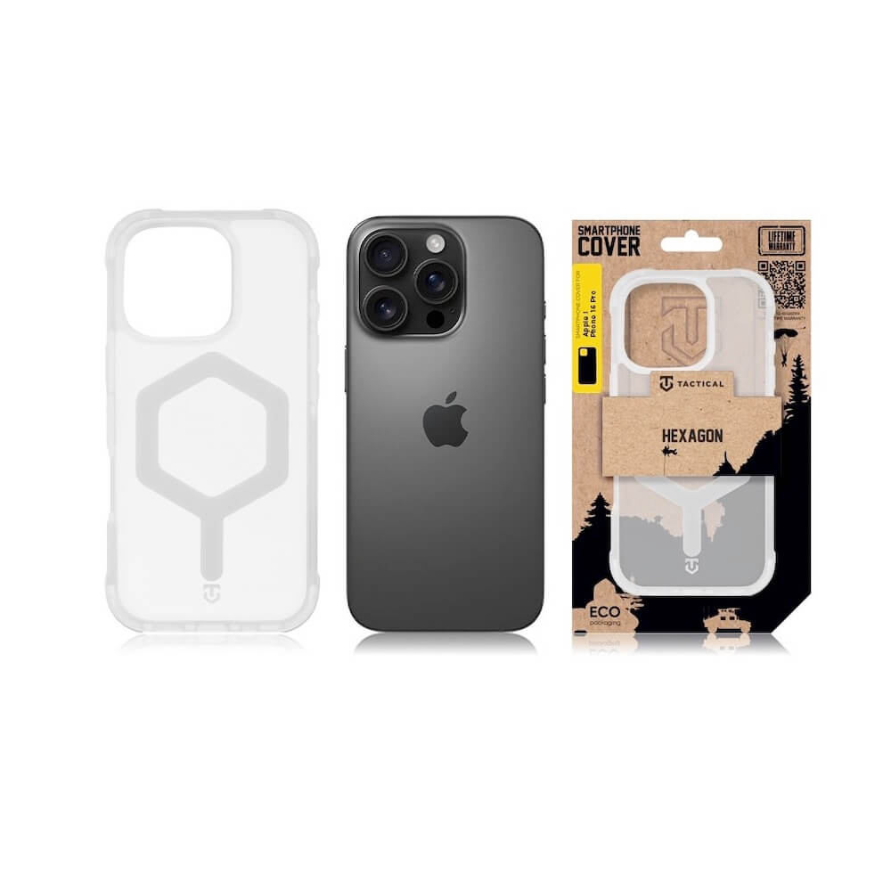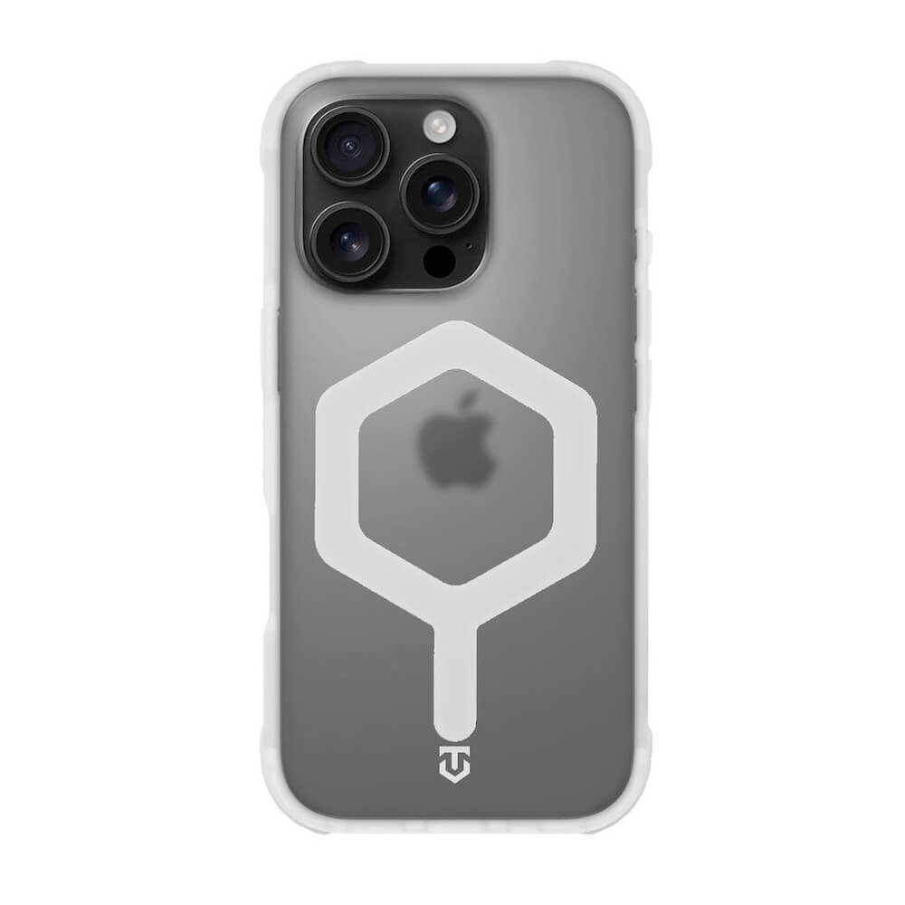 Хибриден удароустойчив кейс с MagSafe за iPhone 16 Pro - Tactical MagForce Hexagon Cover (бял-прозрачен)