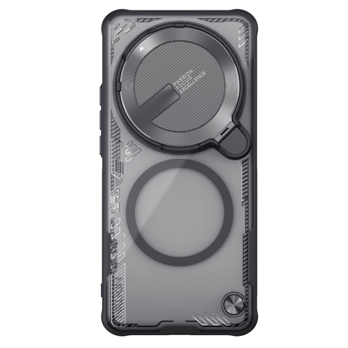 Хибриден удароустойчив кейс с вградена поставка и MagSafe за Xiaomi 15 Ultra - Nillkin Iceblade Prop Magnetic Hard Case (черен-прозрачен)