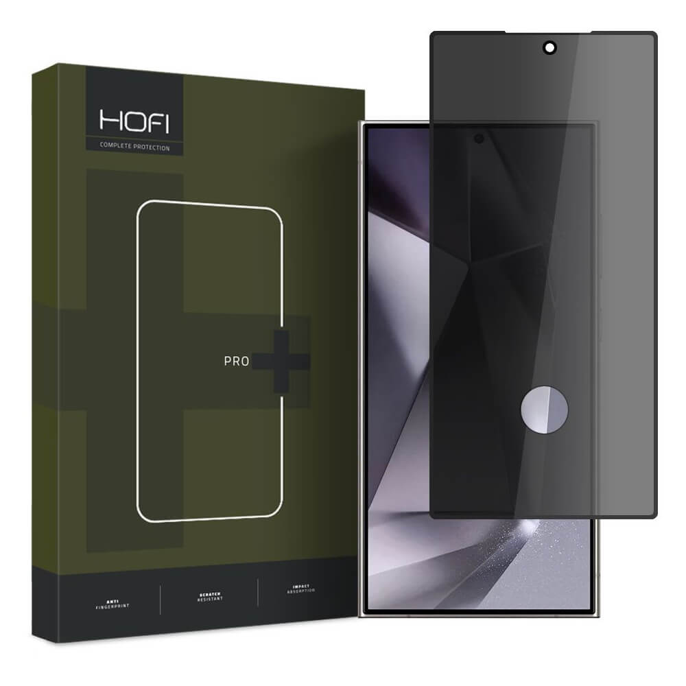 Hofi Anti-Spy Pro Plus Full Screen Tempered Glass - калено стъклено защитно покритие с определен ъгъл на виждане за дисплея на Samsung Galaxy S24 Ultra (черен-прозрачен)