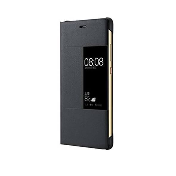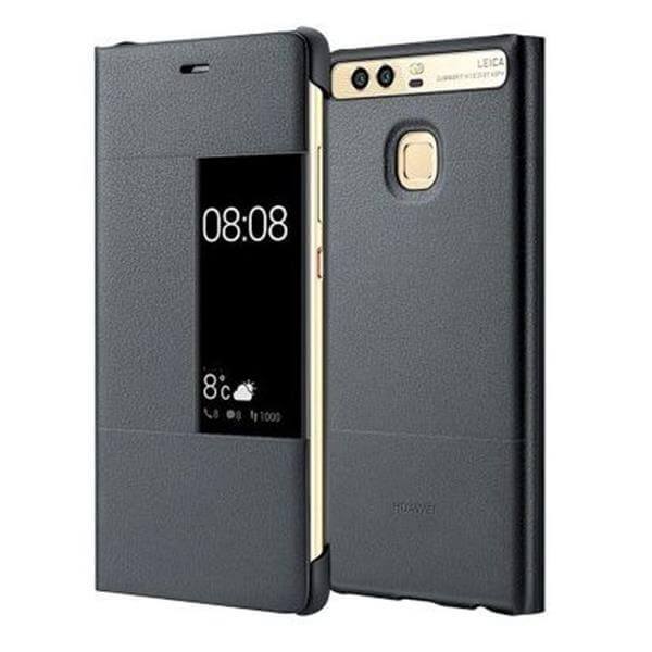 Huawei Flip Case with Window - оригинален кожен калъф с отвор за дисплея за Huawei P9 Plus (тъмносив)