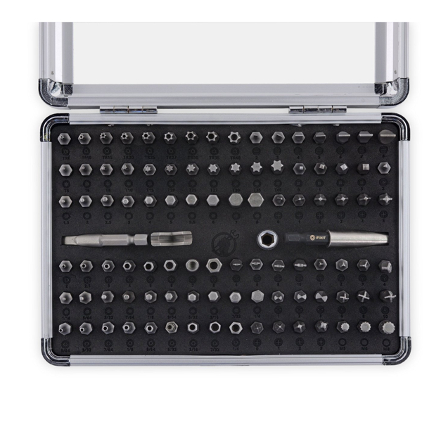 • В комплекта ще намерите всички накрайници, които са ви необходими да разглбите почти всеки един смартфон на пазара: Torx, Phillips, Pozidriv, Clutch, Torq, Spline, Triwing, Square, Spanner, Hex, Flathead и Triangle накрайници! 97 висококачествени 1/4" накрайника изработени от CR-V стомана.