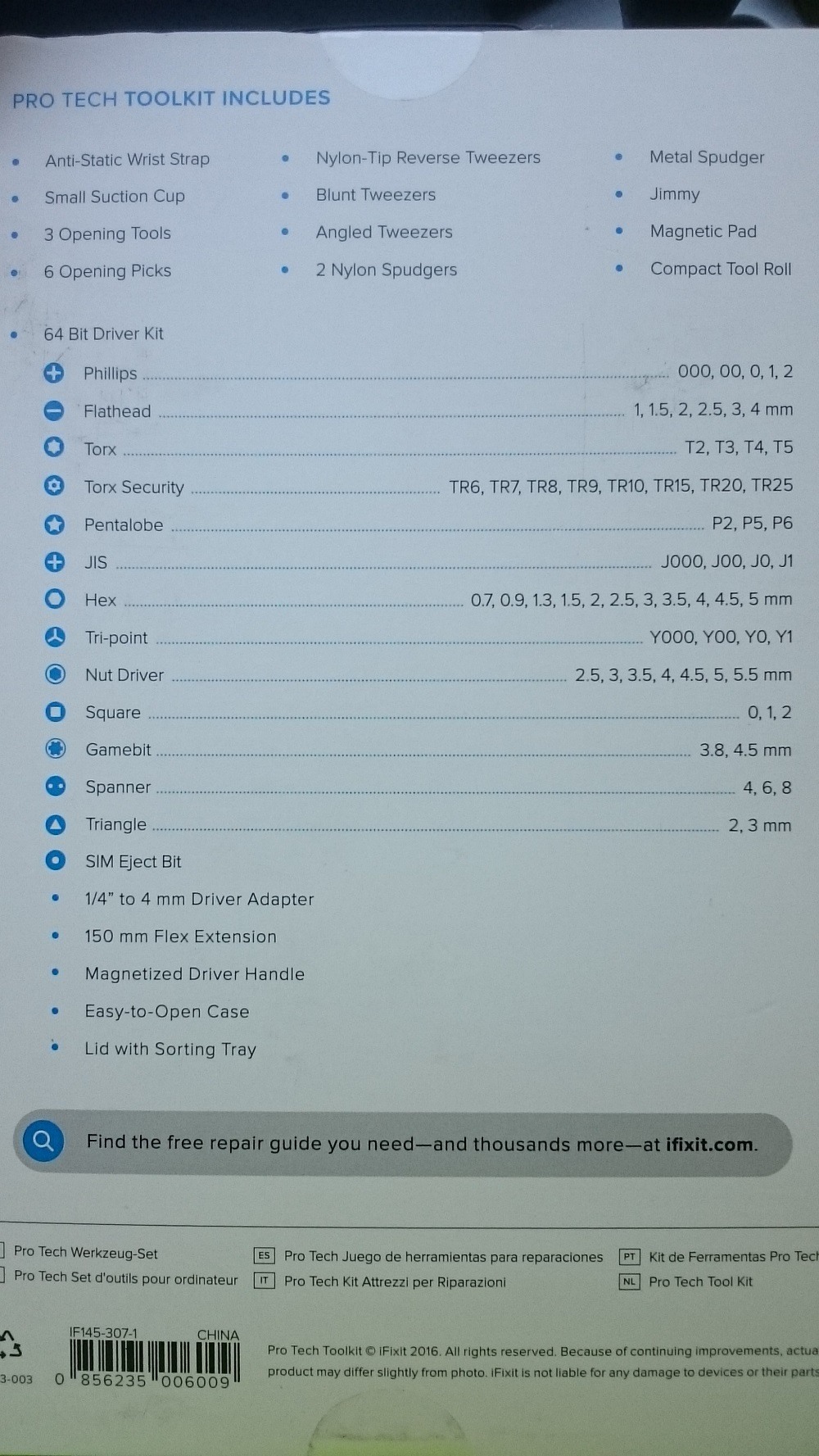 § Комплекта iFixit Pro Tech Toolkit е със специално селектирани инструменти от прословутите техници от iFixit, като те гарантират, че с тях ще разглобиш почти всякаква малка електроника