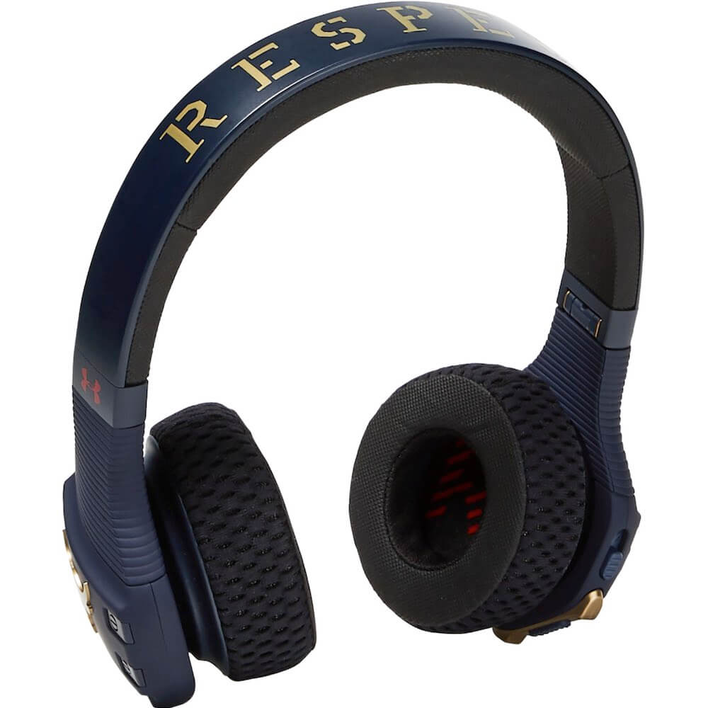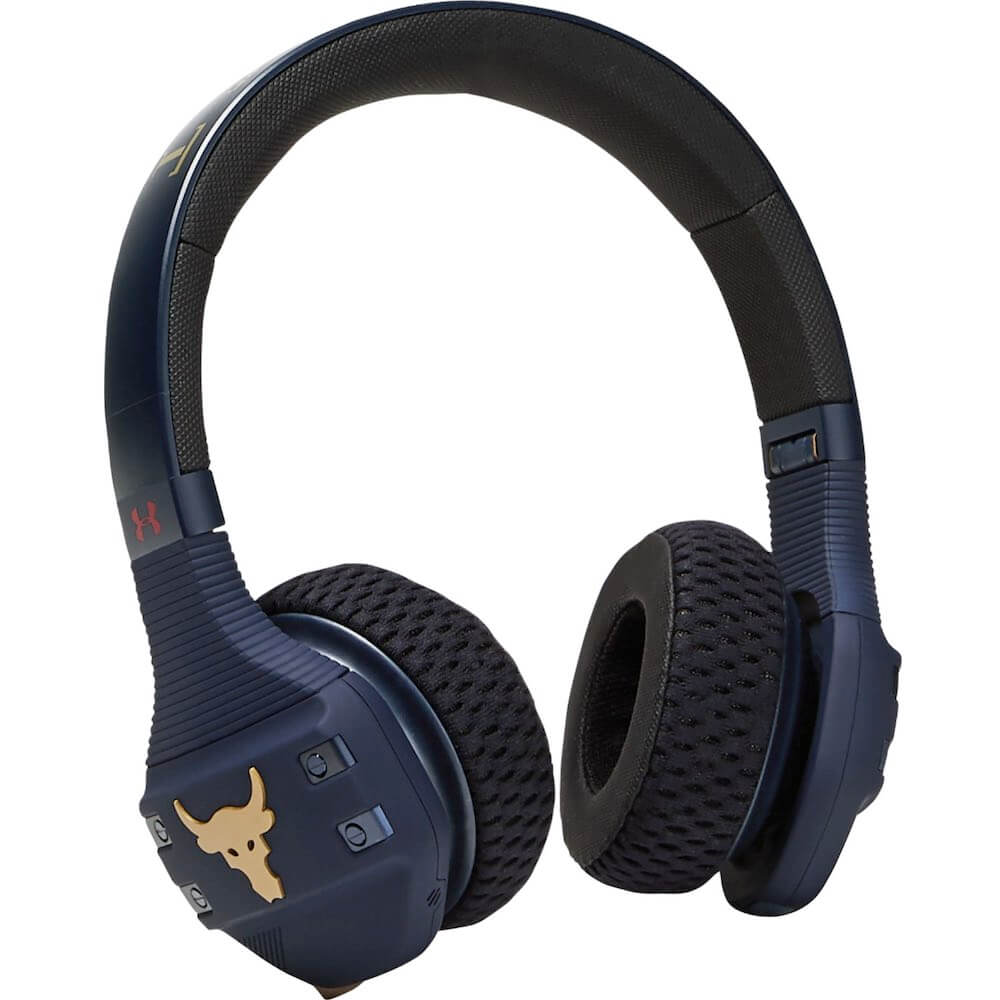 JBL Under Armour Project Rock Wireless Headphones - безжични Bluetooth слушалки с микрофон за мобилни устройства (син) (JBL FACTORY RECERTIFIED))