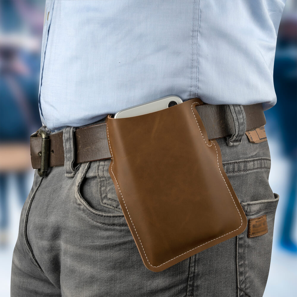 JC Belt Case Universal - кожен калъф за колана за смартфони до 6 инча (кафяв)
