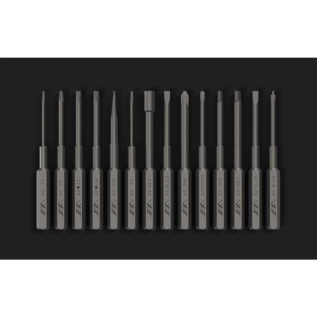 - Комплектът включва държач, 14 накрайника, пинсети и здрав калъф с магнетизатор и огранайзер
