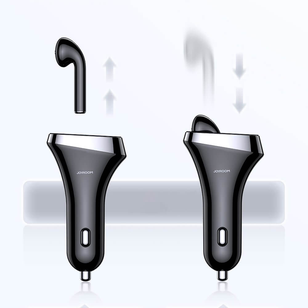 Joyroom Car Charger 2 x USB with Bluetooth Earphone 30W - комплект зарядно за кола с Bluetooth слушалка и два USB изхода (бял)
