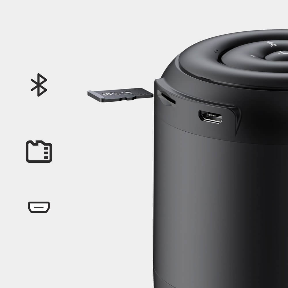 - Вграден слот за TF карти (microSD), който поддържа до 32GB, през който можете да свържете карта с музика към спийкъра
