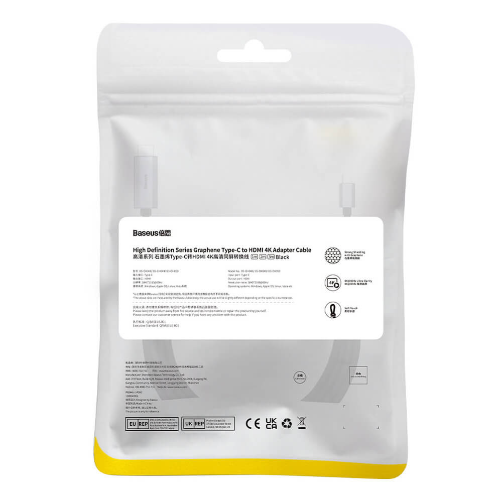 - В комплекта: - 1 х Baseus 4K 60Hz USB-C to HDMI Cable