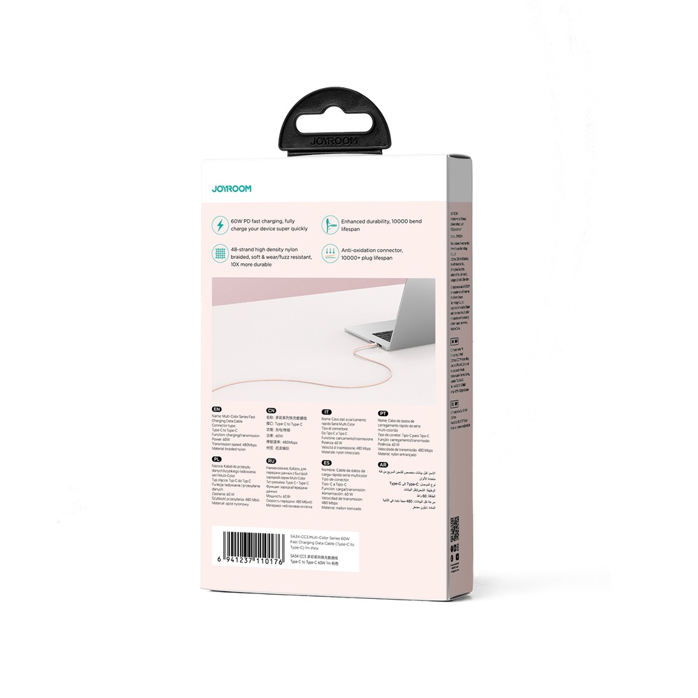 - В комплекта: 1 х Joyroom Multi-Color Series USB-C to USB-C Cable 60W PD.