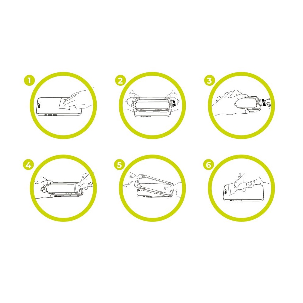 - Внимание: протекторът трябва да се поставя в безпрашна среда, за да се избегне попадането на прашинки между него и дисплея на вашето устройство!