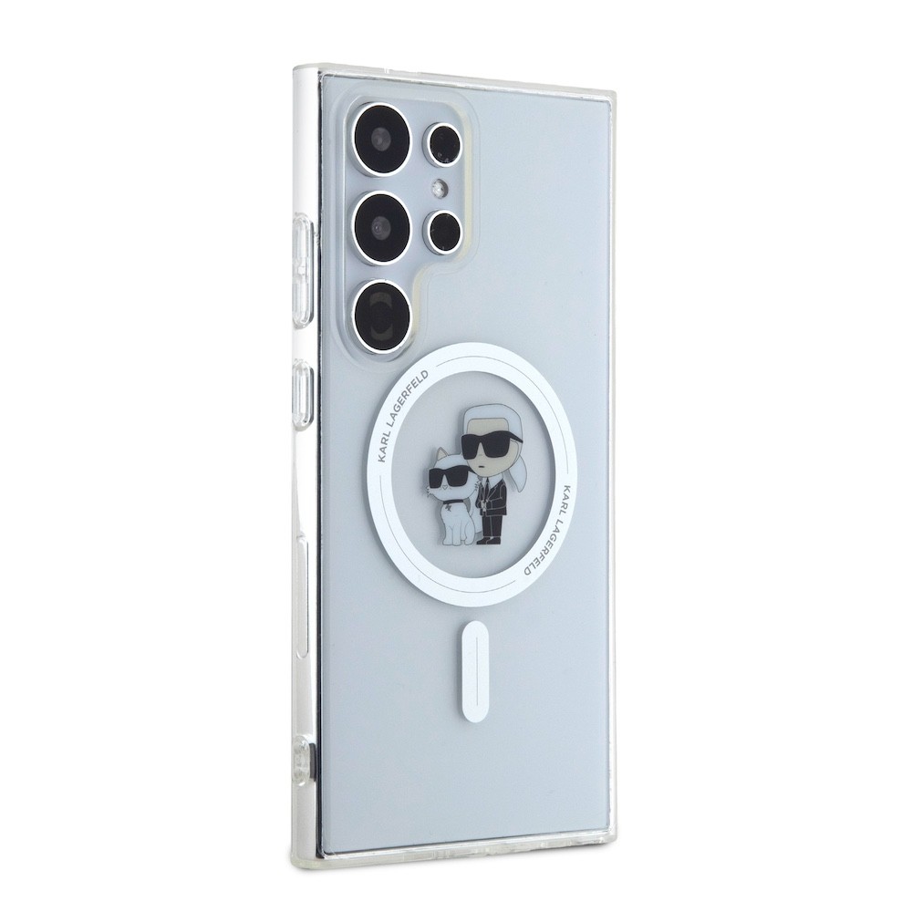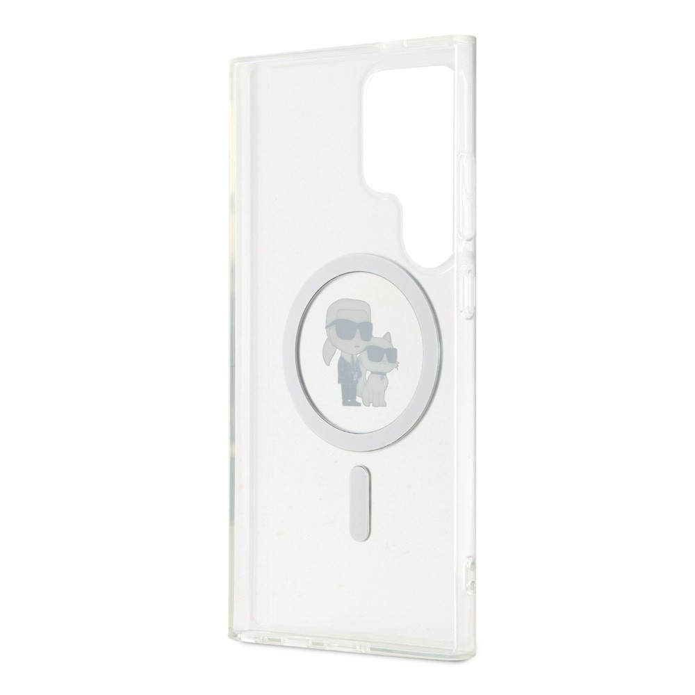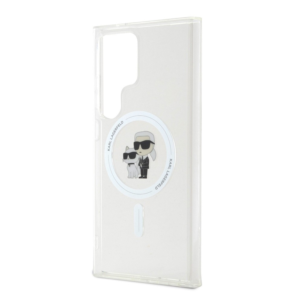 Karl Lagerfeld IML Glitter Karl and Choupette MagSafe Case - дизайнерски силиконов кейс с MagSafe за Samsung Galaxy S24 Ultra (прозрачен)