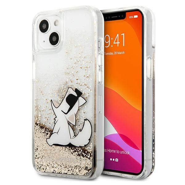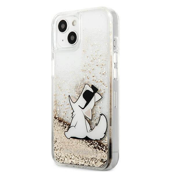 Karl Lagerfeld Liquid Glitter Choupette Fun Case - дизайнерски кейс с висока защита за iPhone 13 (прозрачен)