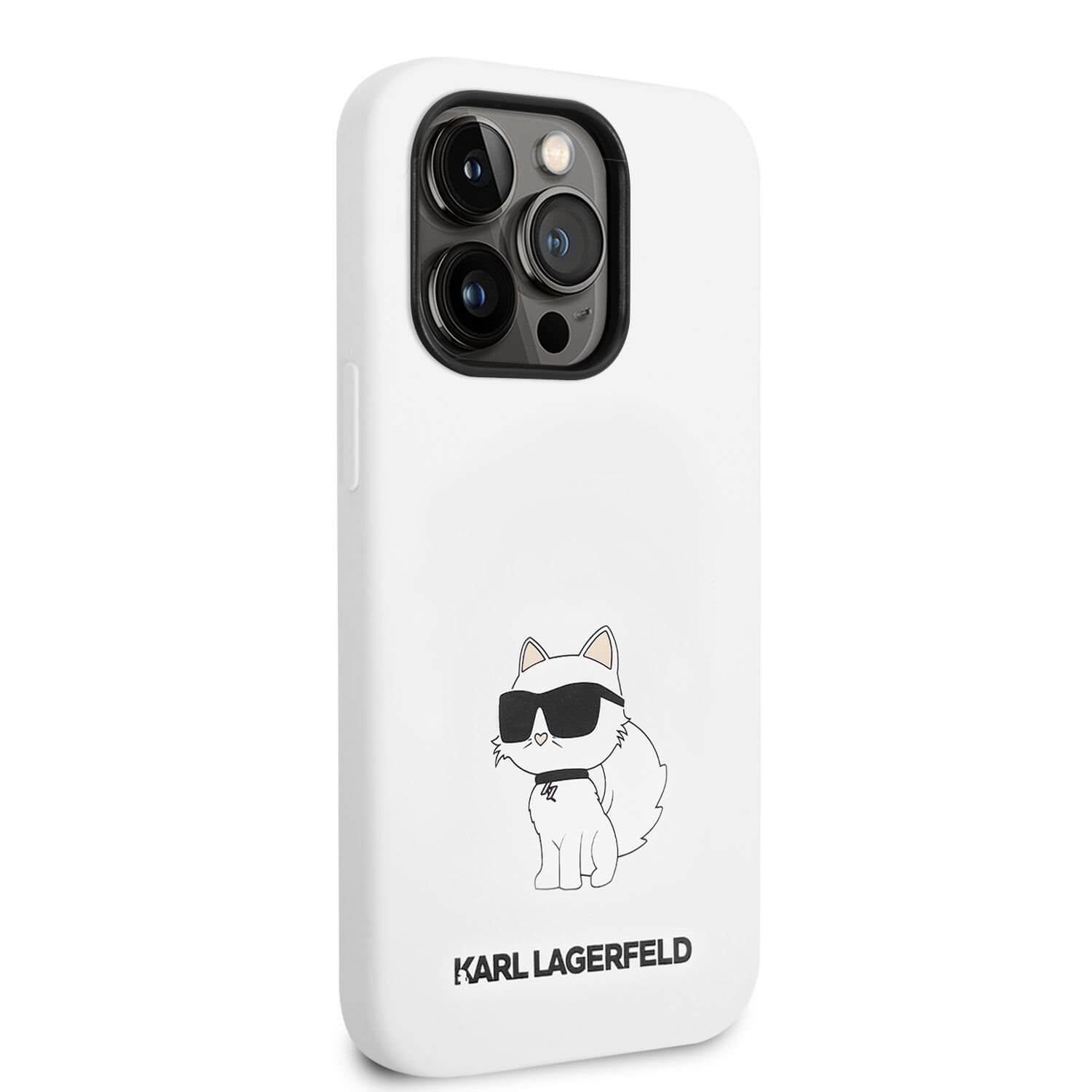 Karl Lagerfeld Liquid Silicone Choupette NFT Case - дизайнерски силиконов кейс за iPhone 14 Pro (бял)
