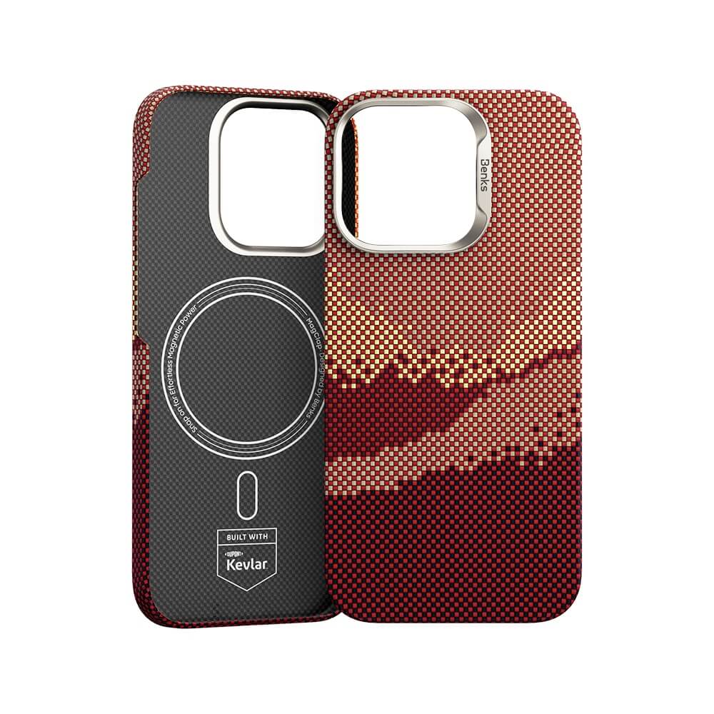 Кевларен кейс с MagSafe за iPhone 16 Pro - Benks GoldenTide ArmorAir Magnetic Kevlar Case 600D (червен-оранжев)