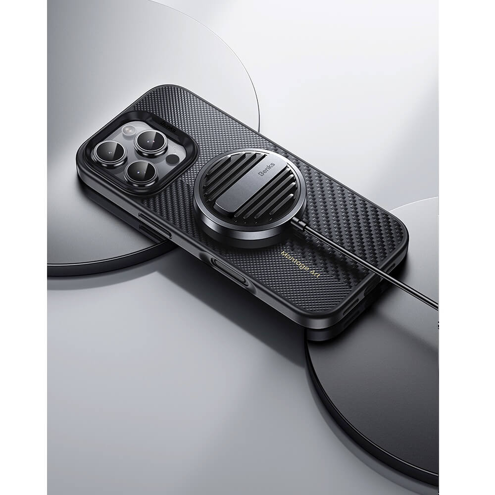 Кевларен кейс с MagSafe за iPhone 16 Pro - Benks Magnetic Armor Pro Montage Kevlar Metal Frame Camera Control Case 600D and 1500D (черен)