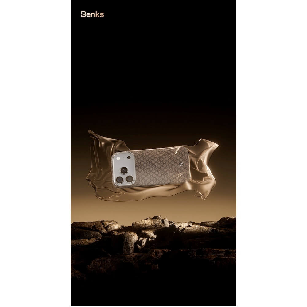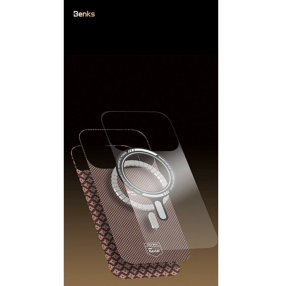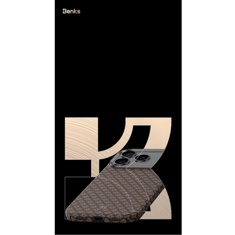 Кевларен кейс с MagSafe за iPhone 17 Pro - Benks ArmorGrid ArmorAir Magnetic Kevlar Metal Frame Case 600D (златист)