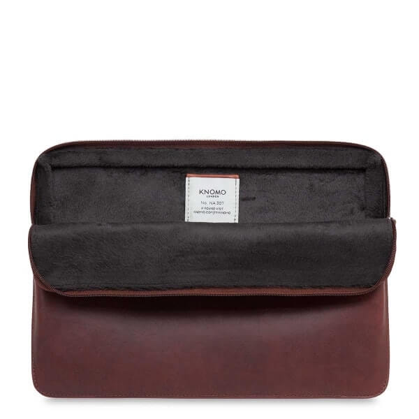 - Knomo BARBICAN Leather Sleeve е луксозен и стилен, ръчно изработен калъф, предназначен да съхрани вашия MacBook 16 или друг ултрабук с големина на дисплея 16"