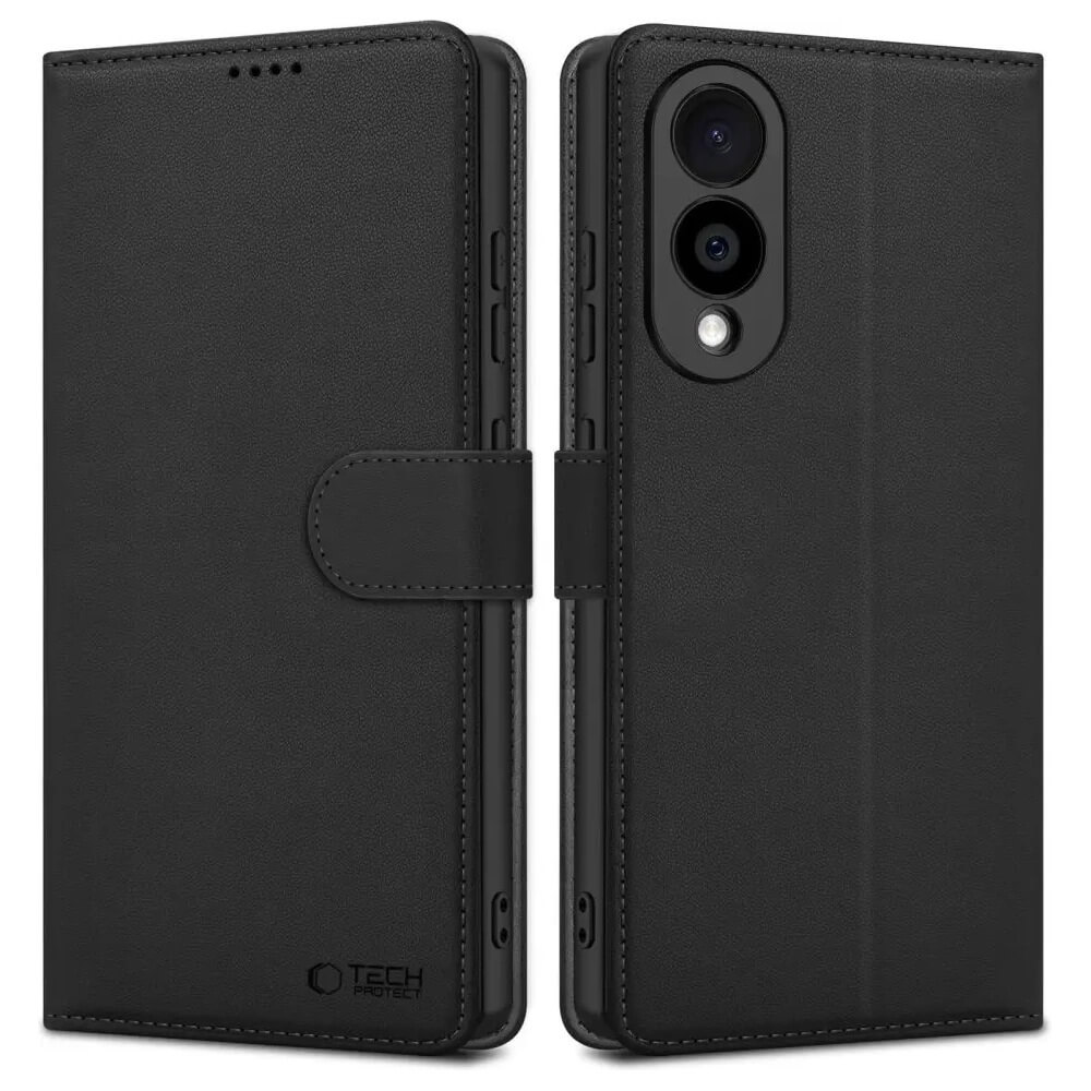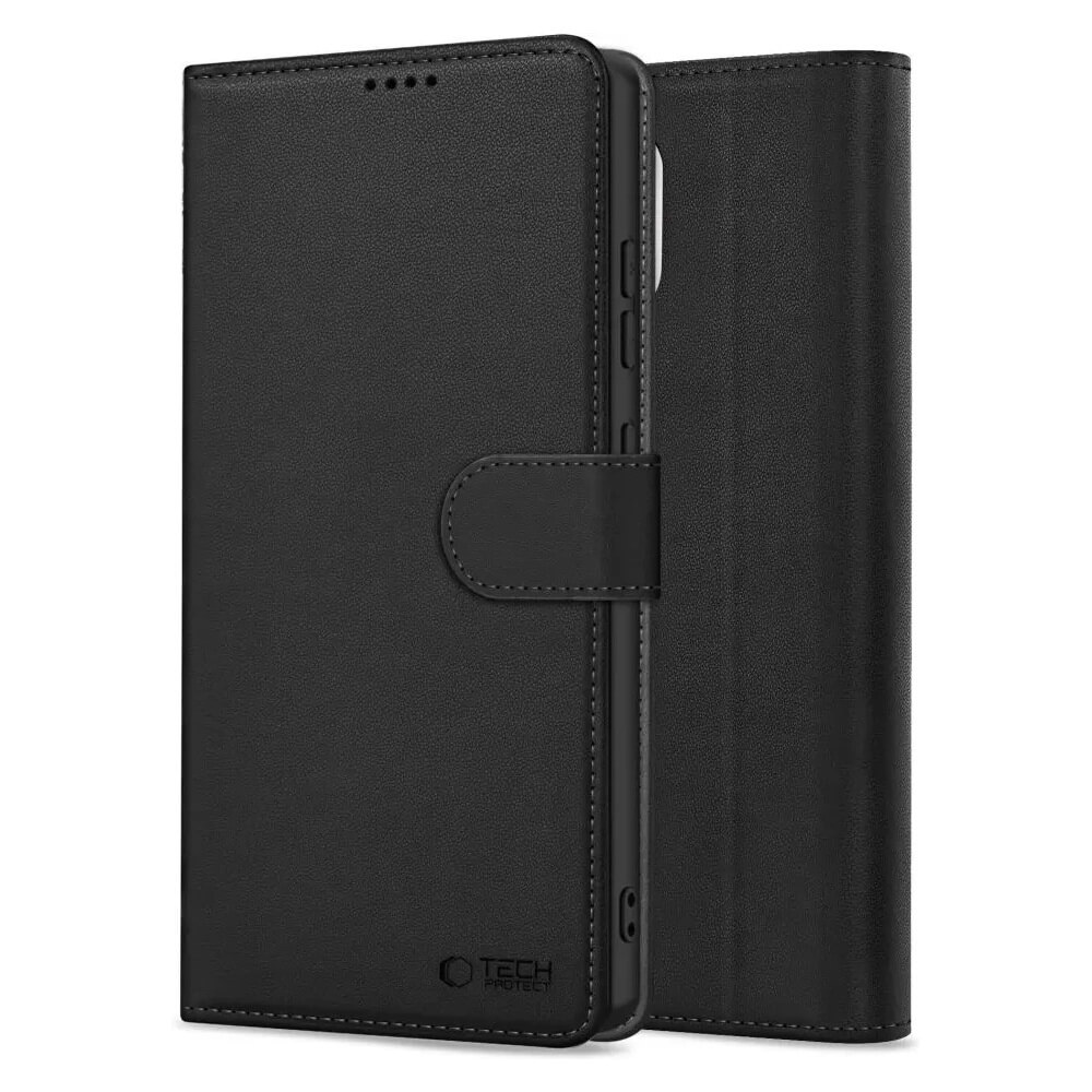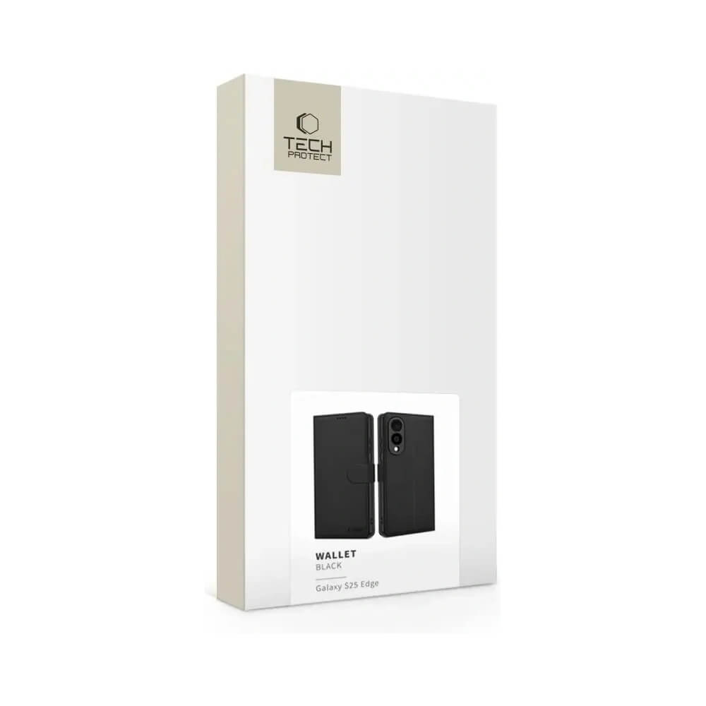 Кожен калъф, тип портфейл за Samsung Galaxy S25 Edge - Tech-Protect Wallet Leather Flip Case (черен)