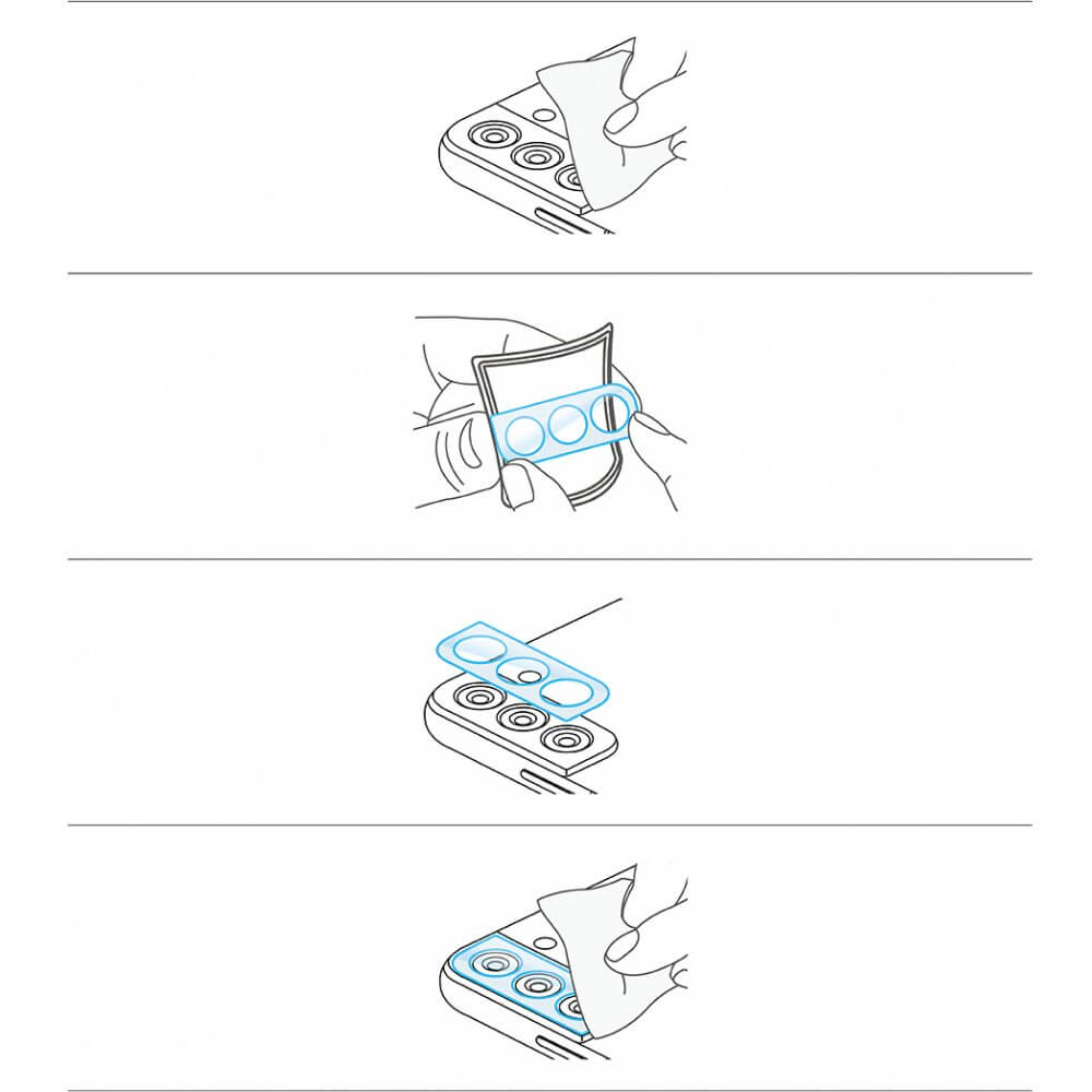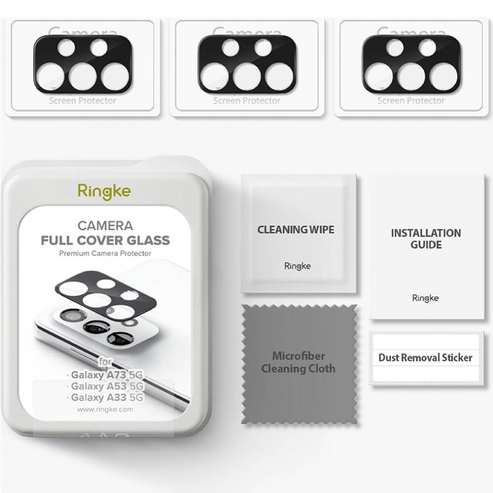 - В комплекта: 3 х Ringke Camera Lens Glass, 1 x микрофибърна кърпичка, 1 х мокра кърпичка, 1 х антистатична лепенка за премахване на прашинки - Всичко необходимо за лесен монтаж и поддръжка.