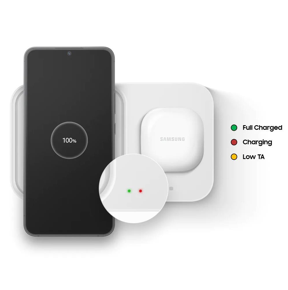 Открийте удобството на бързото безжично зареждане с оригиналната Super Fast Wireless Charger Duo от Samsung. Тази иновационна зарядна станция ви позволява да зареждате до 2 устройства едновременно, което я прави идеален избор за активни потребители.