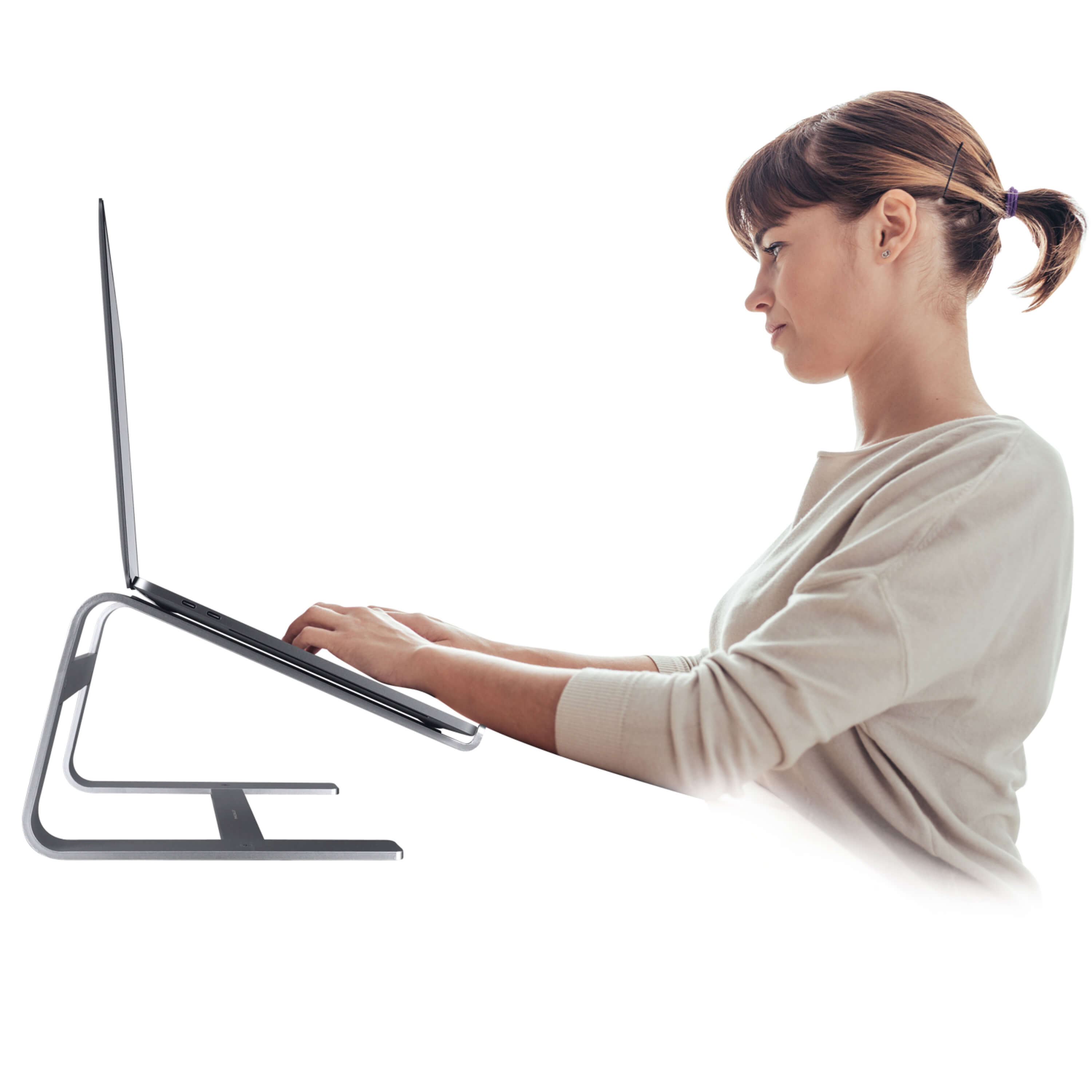 - Macally ASTANDSG е алуминиева поставка, която се повдига до 15 см височина, срещата нивото на очите, за да подобри позицията за стоене на вашето тяло и също така ъгъла ви на виждане. По този начин вие намалявате риска от болките във врата и главоболията, които се получават в следствие на неправилна стойка