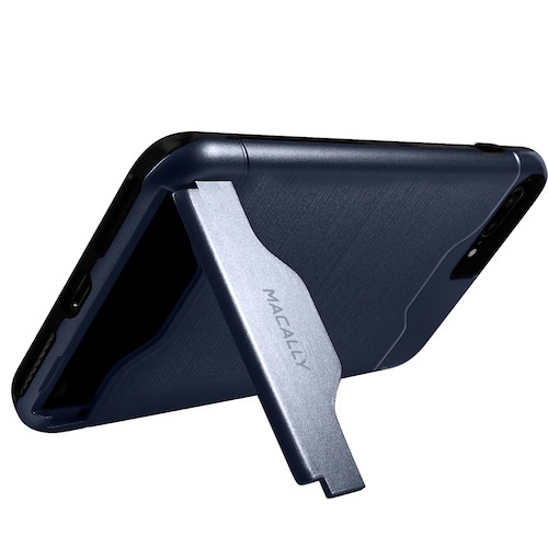 Macally KStand Case - хибриден удароустойчив кейс със слот за кр. карта и поставка за iPhone 8 Plus, iPhone 7 Plus (син)