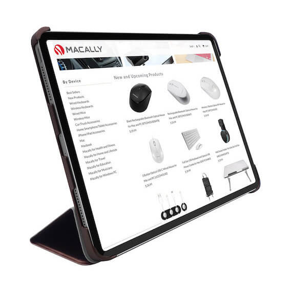 Macally Stand Case - полиуретанов калъф и поставка за iPad Pro 12.9 (2018), iPad Pro 12.9 (2020) (кафяв)
