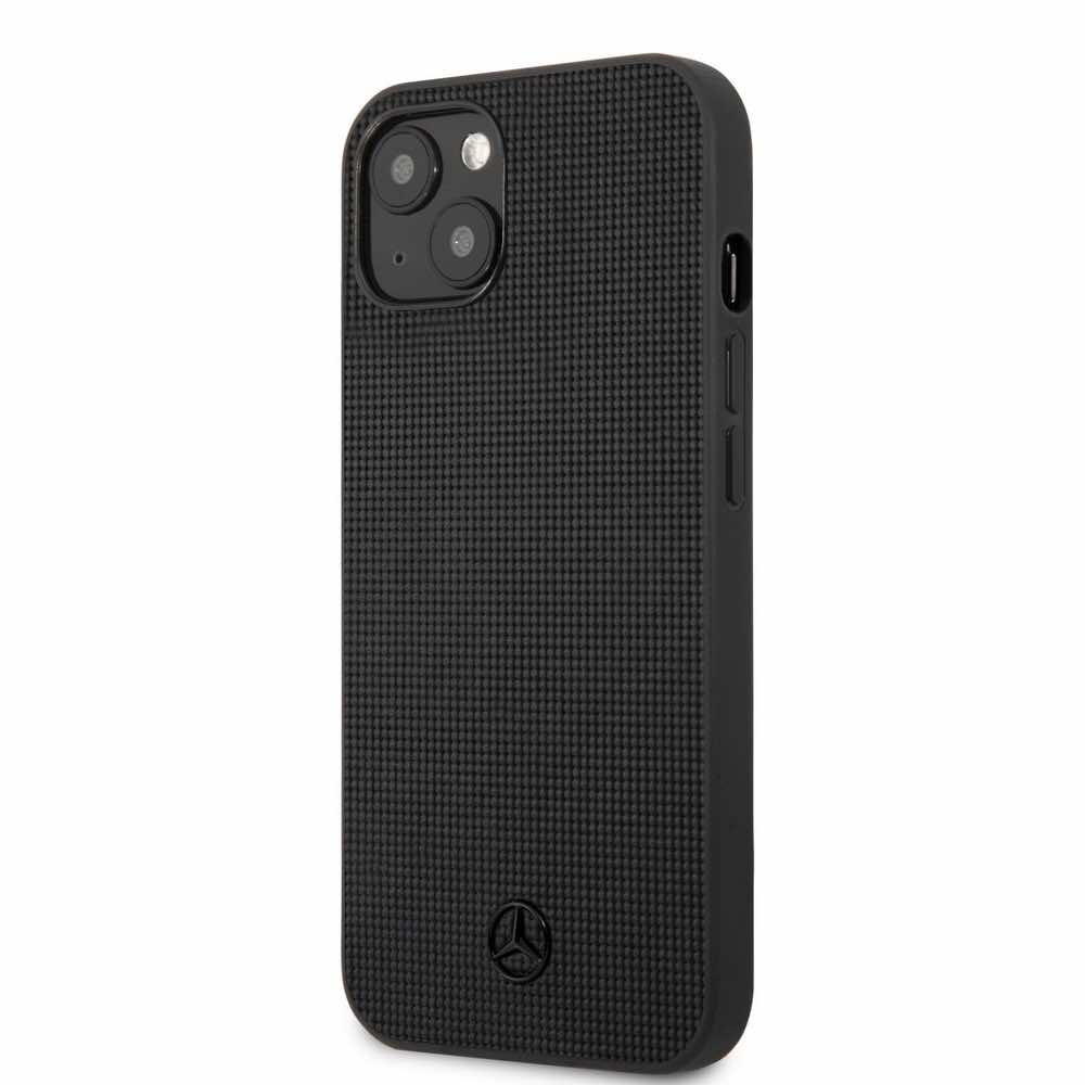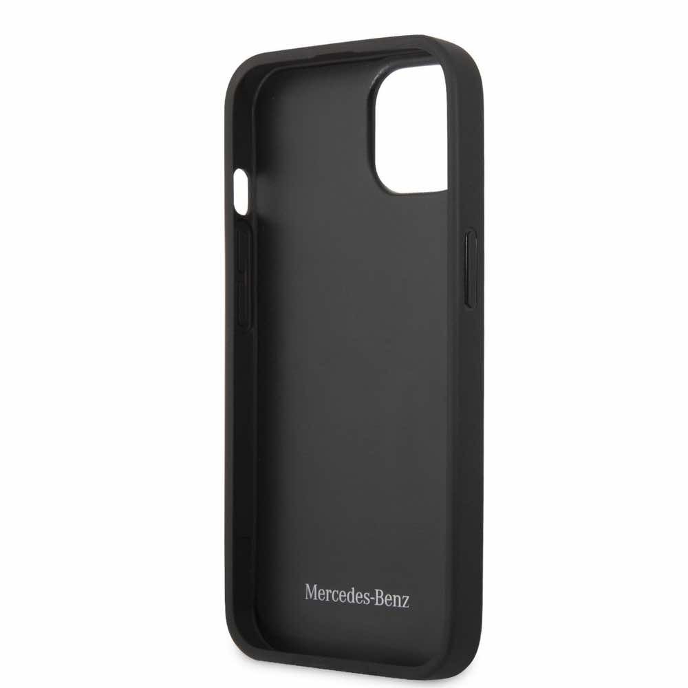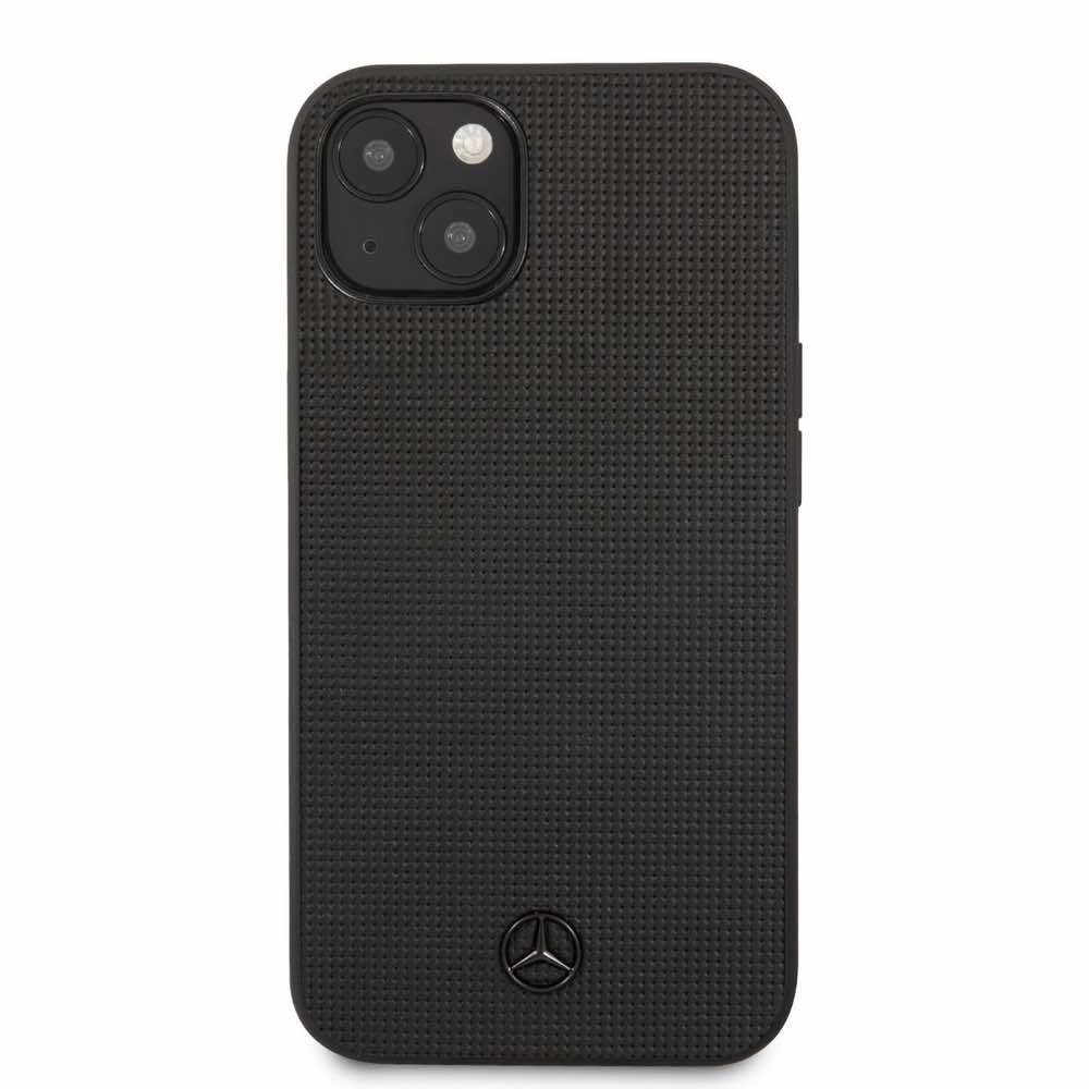 Mercedes-Benz Genuine Leather Meshed Hard Case - дизайнерски кожен кейс (естествена кожа) за iPhone 13 (черен)