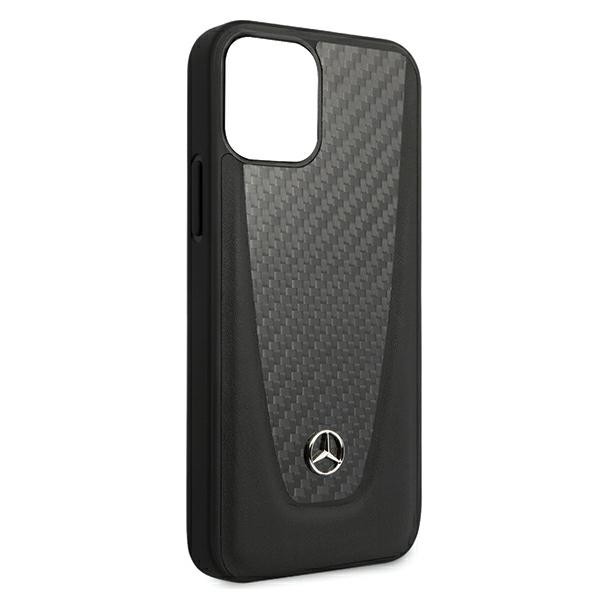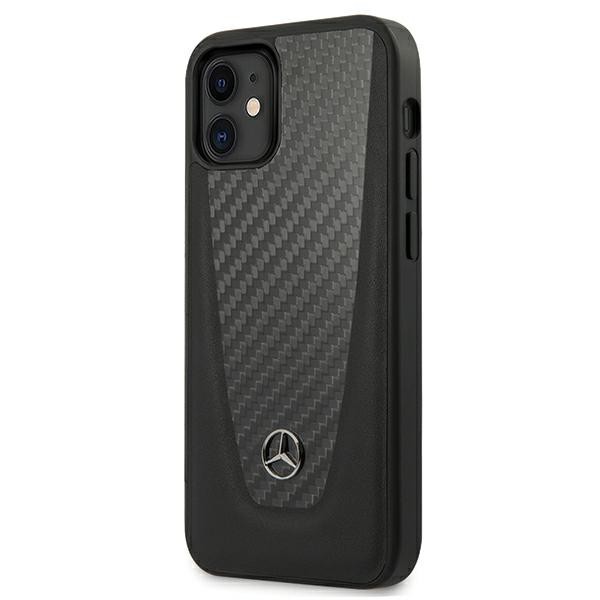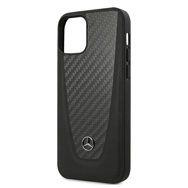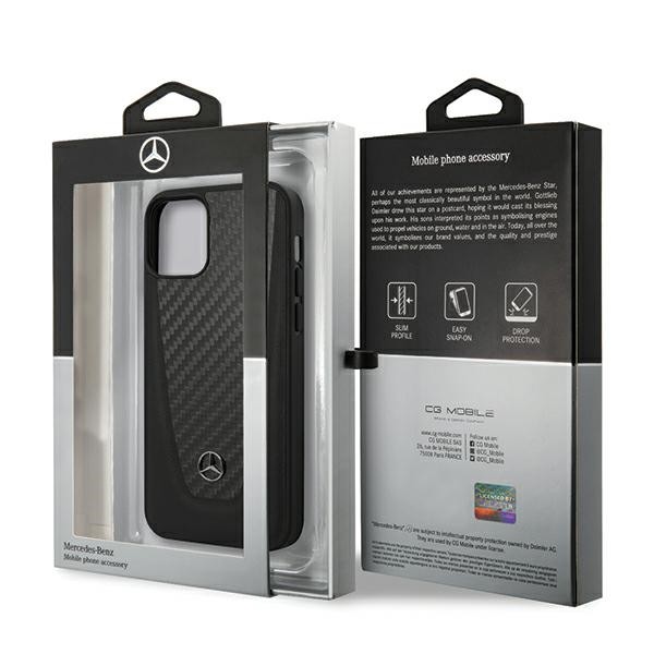 Mercedes Dynamic Carbon Fiber Hard Case - дизайнерски хибриден (карбон+естествена кожа+TPU) карбонов кейс за iPhone 12 Mini (черен)