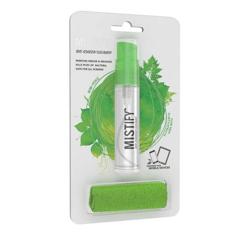 Mistify Natural Screen Cleaner Antibacterial and Non Toxic Sprayer 40ml - антибактериален спрей и микрофибърна кърпичка за почистване на дисплеи