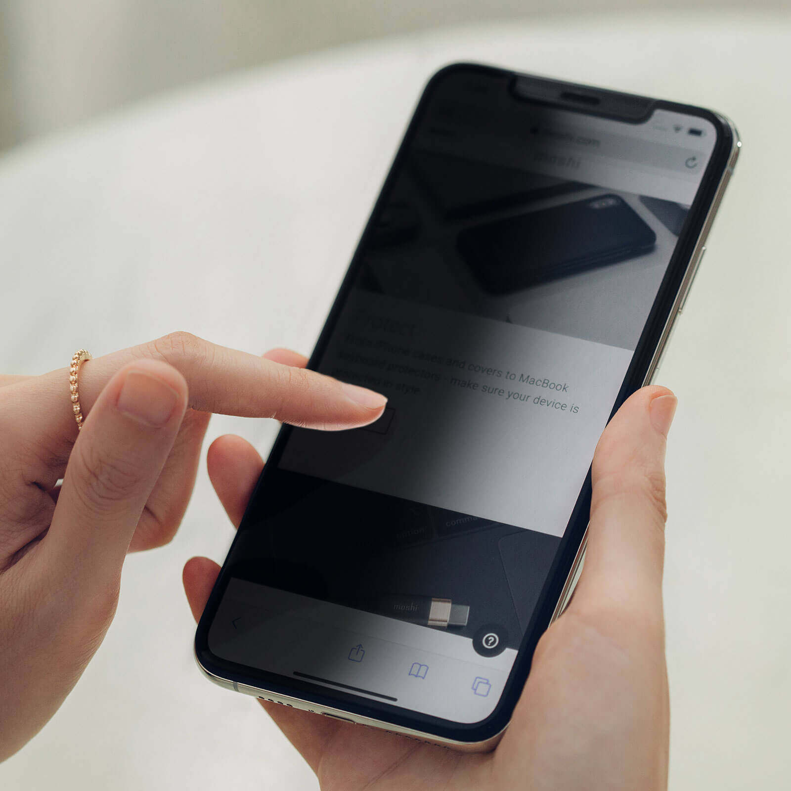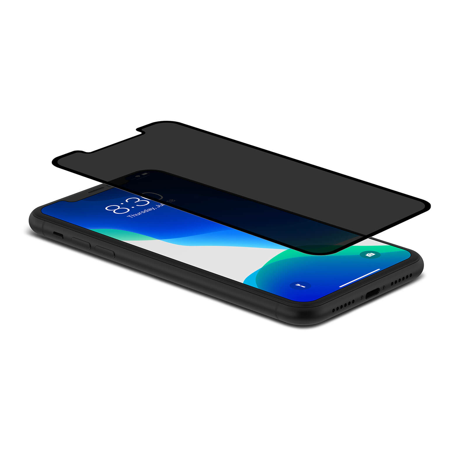 Moshi IonGlass Privacy - стъклено защитно покритие определен ъгъл на виждане за целия дисплей на iPhone 11, iPhone XR (прозрачен-черен)