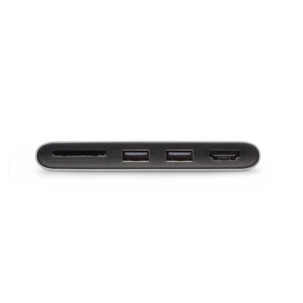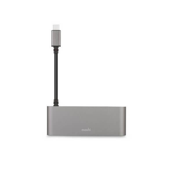 Moshi USB-C Multimedia Adapter - адаптер за свързване от USB-C към HDMI 4K, SD card reader, 2 x USB-A (тъмносив)