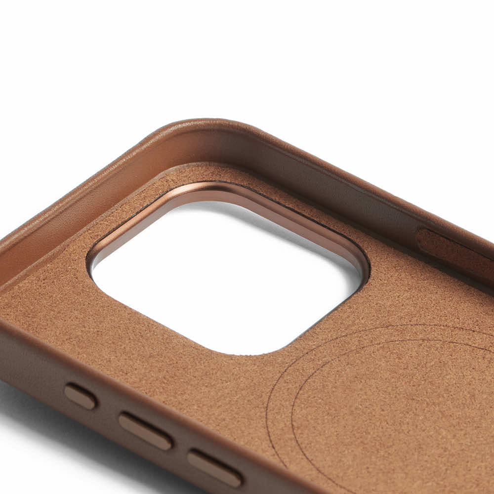 Mujjo Full Leather MagSafe Case - премиум кожен (естествена кожа) кейс с MagSafe за iPhone 15 Pro (кафяв)