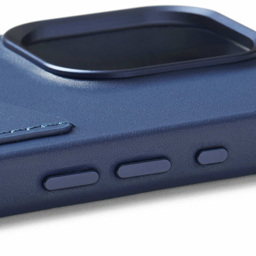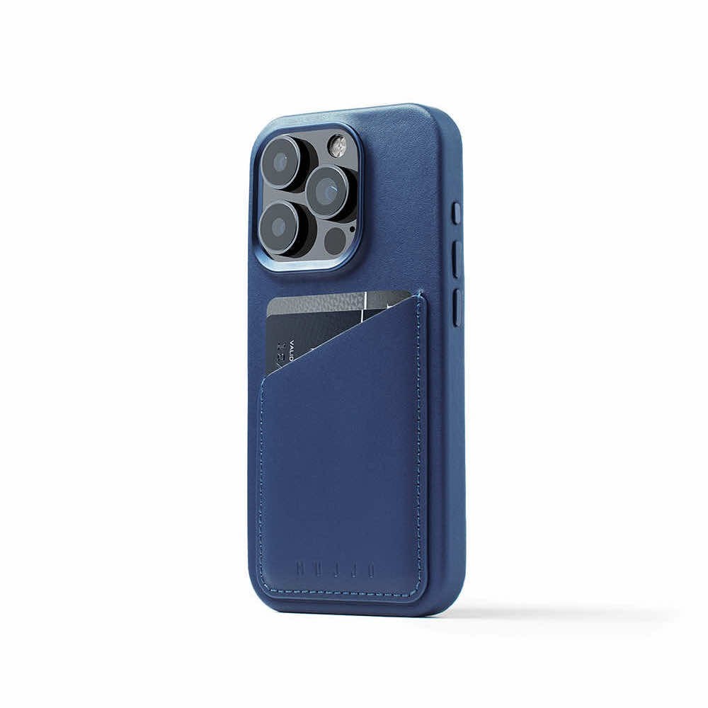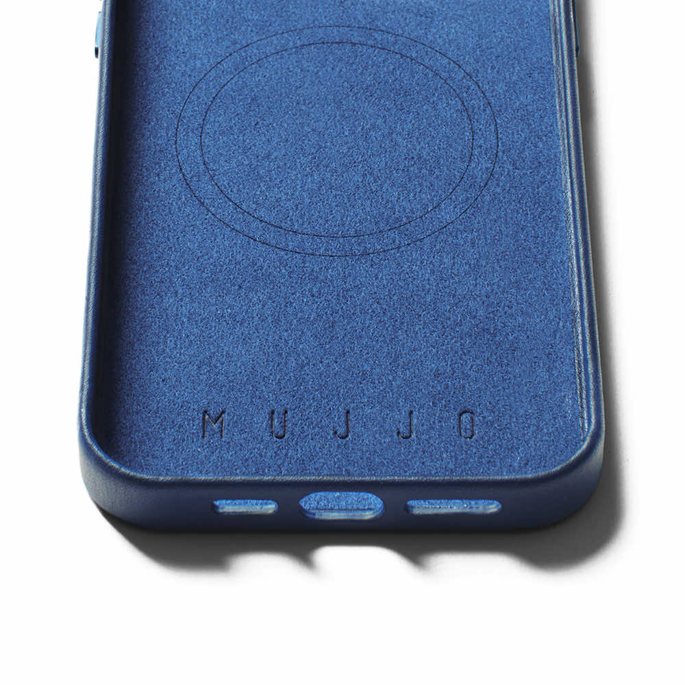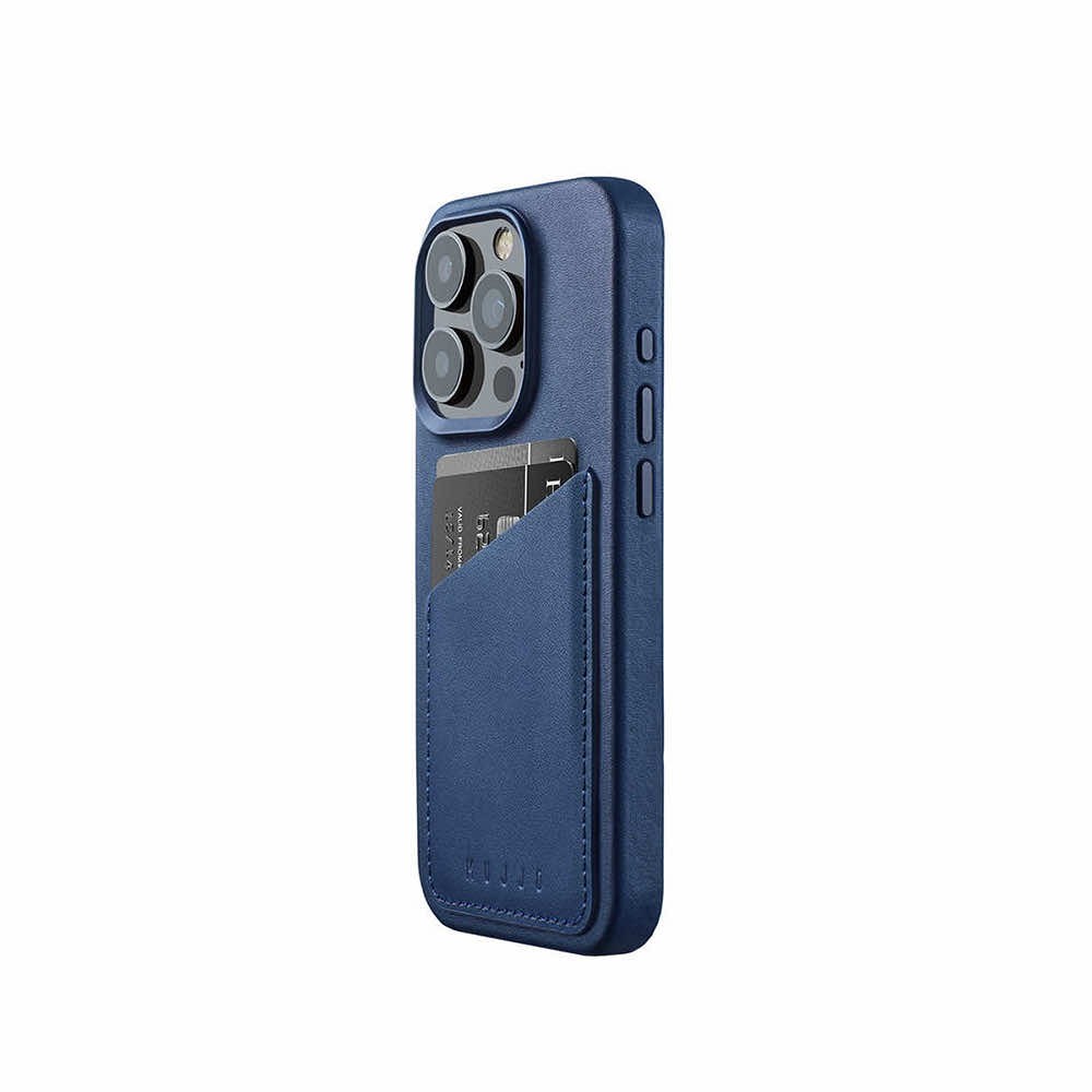Mujjo Full Leather MagSafe Wallet Case - премиум кожен (естествена кожа) кейс с MagSafe за iPhone 15 Pro (син)