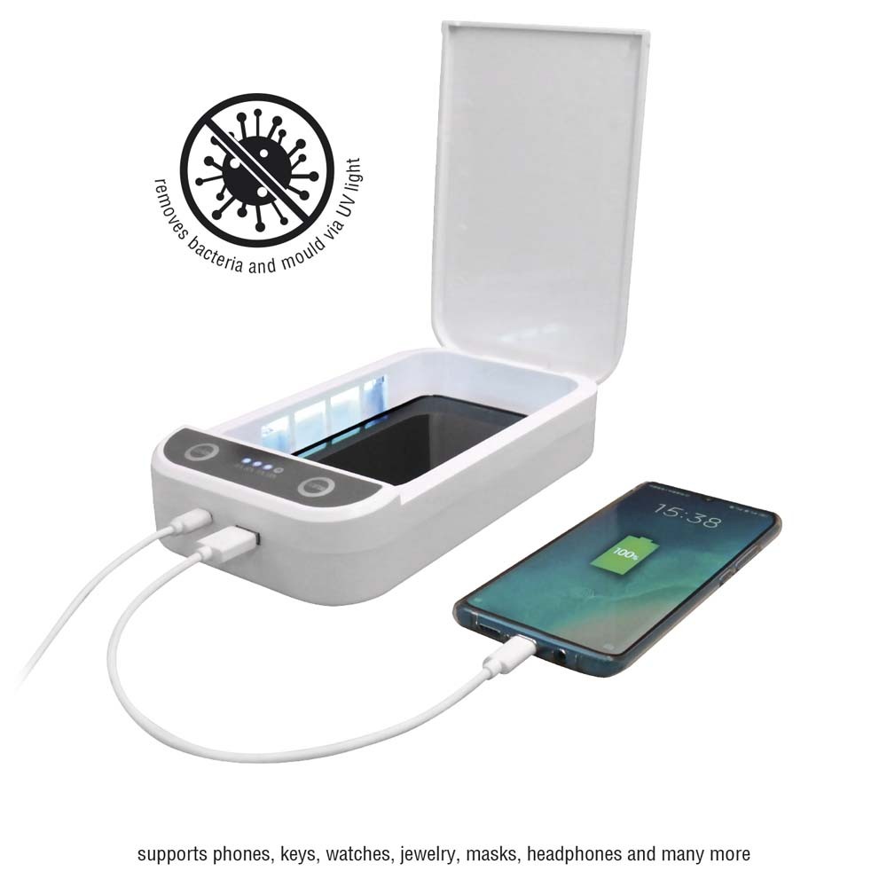MyGuard Universal Sterilizer Device - захранване и UV стерилизатор за мобилни устройства до 6.5 инча (бял)