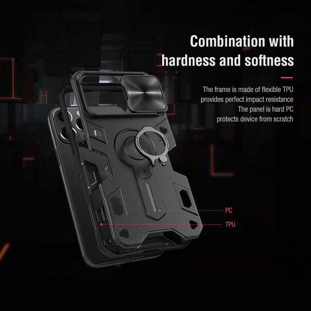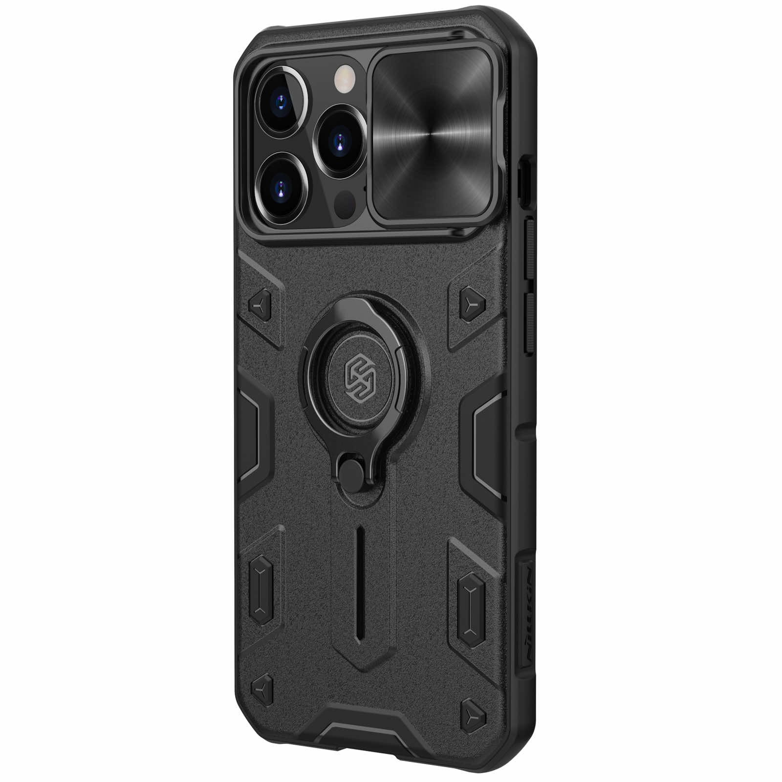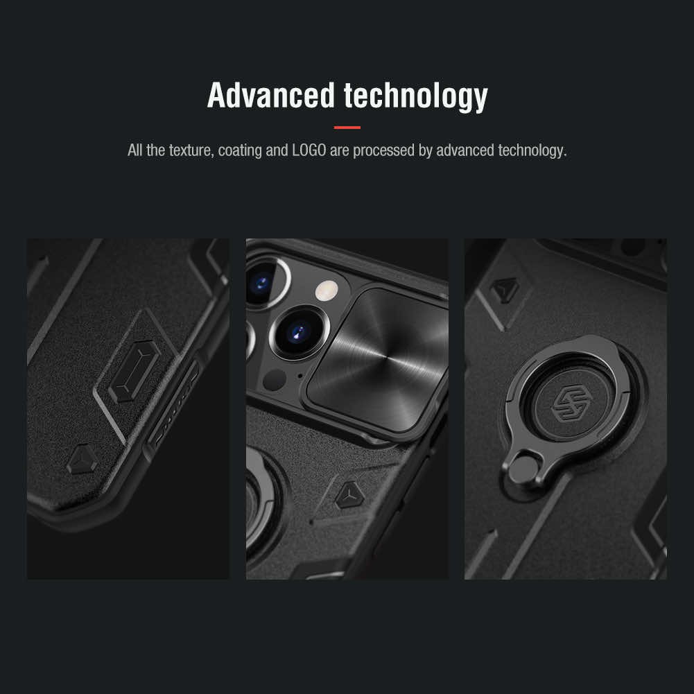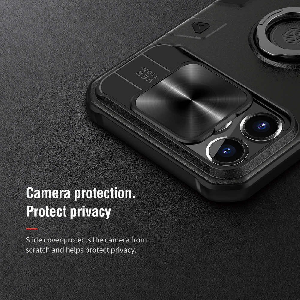 Nillkin CamShield Armor Hard Case - хибриден удароустойчив кейс с пръстен против изпускане за iPhone 13 Pro (черен)