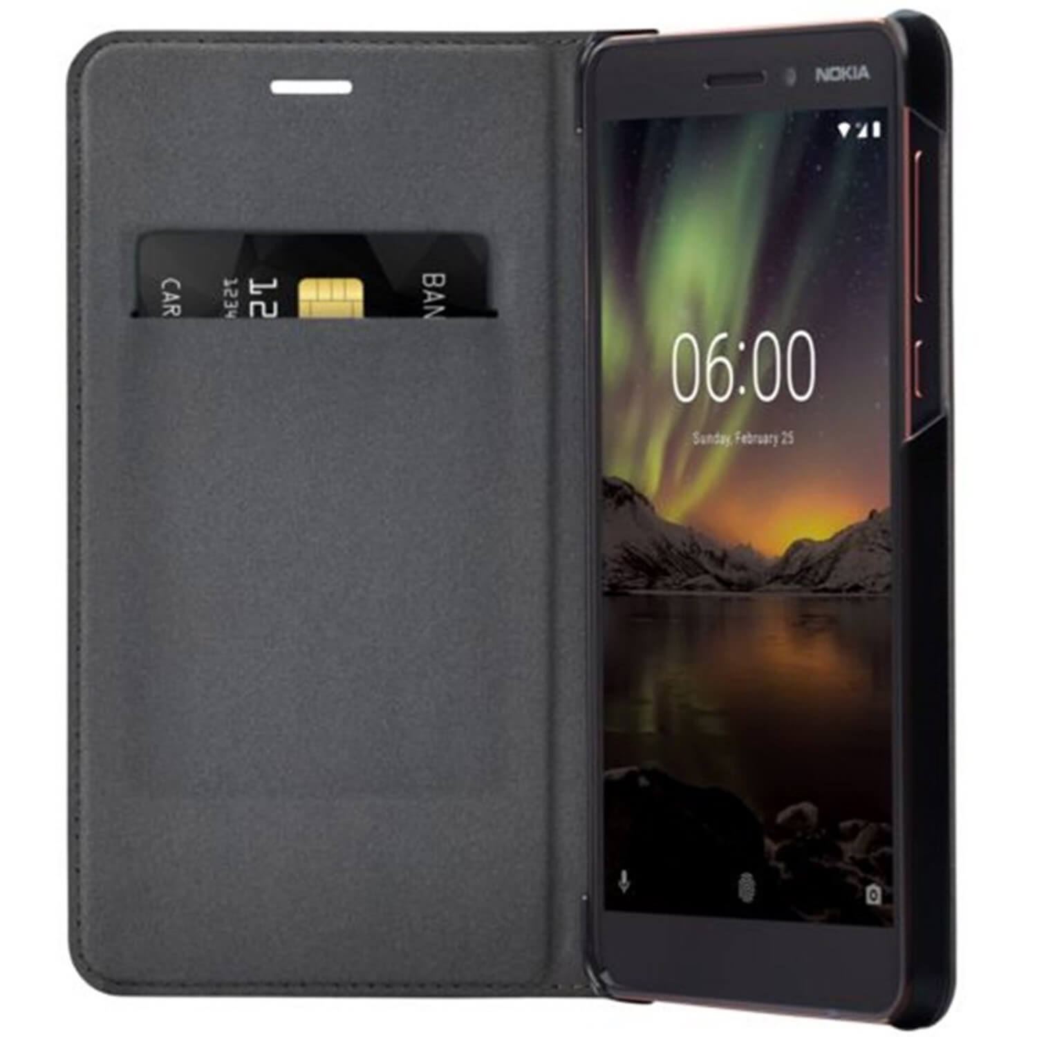 Nokia Slim Flip Case CP-308 - оригинален кожен калъф с отделение за кр. карта за Nokia 6 (2018) (черен)